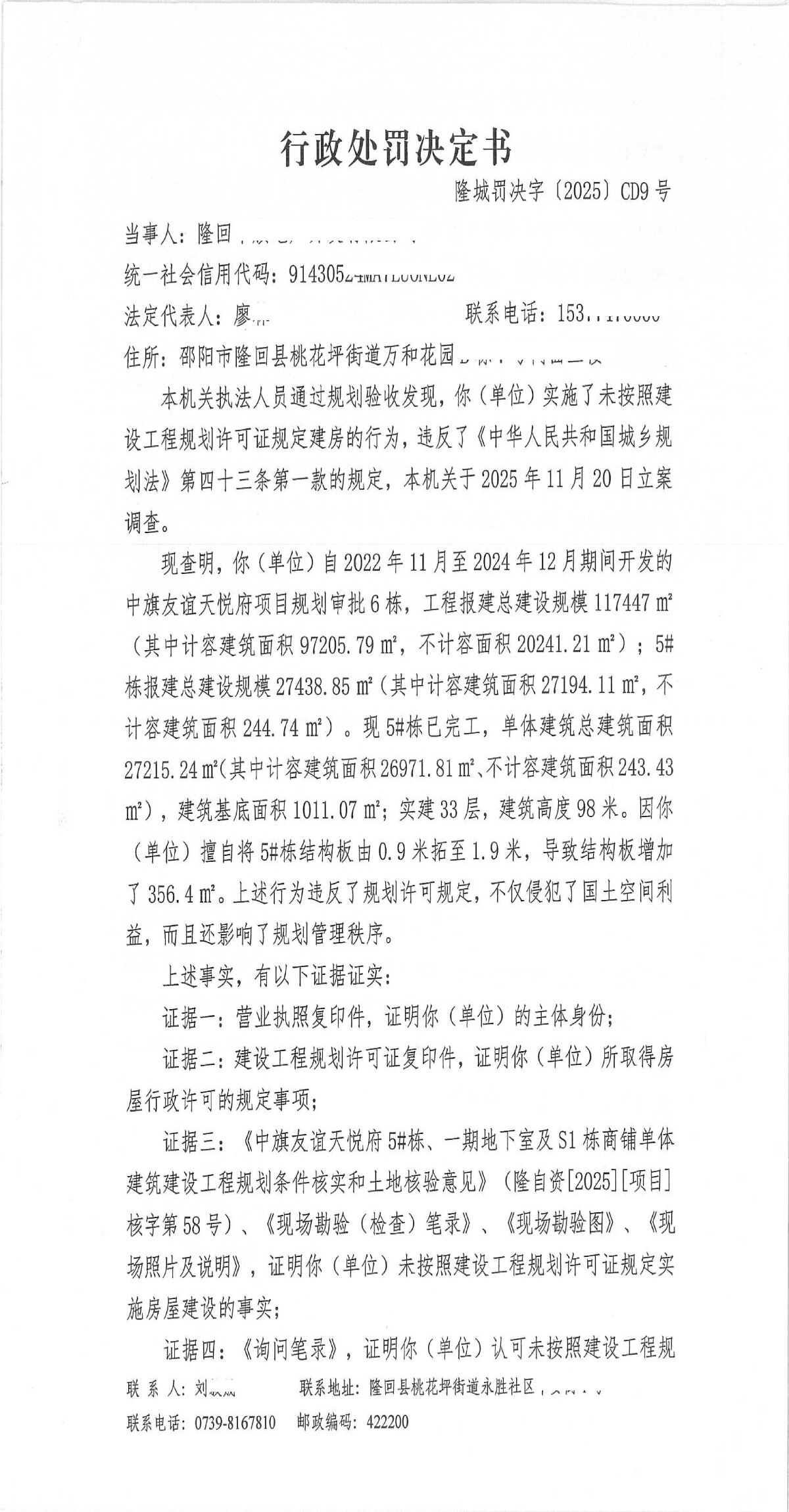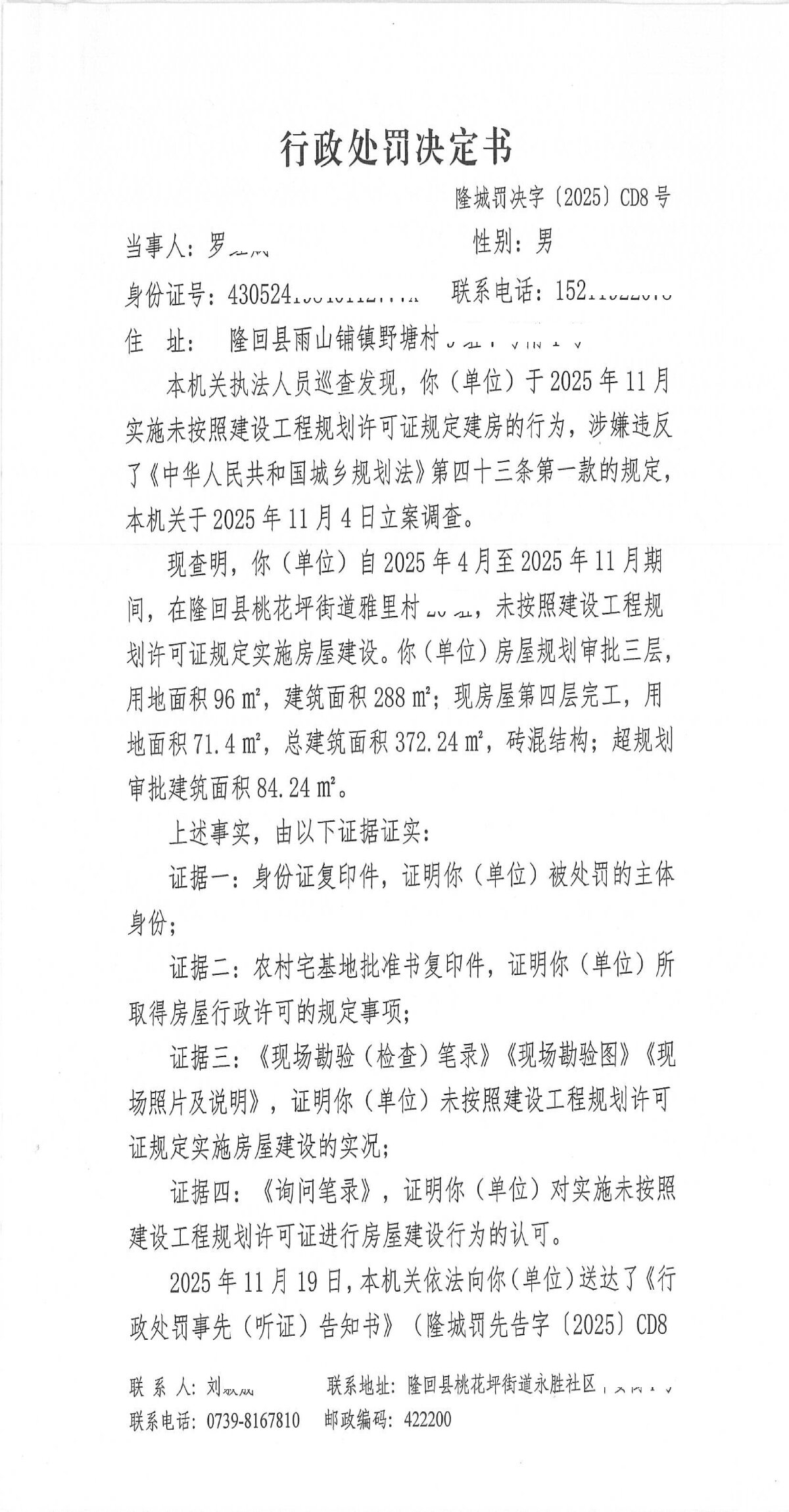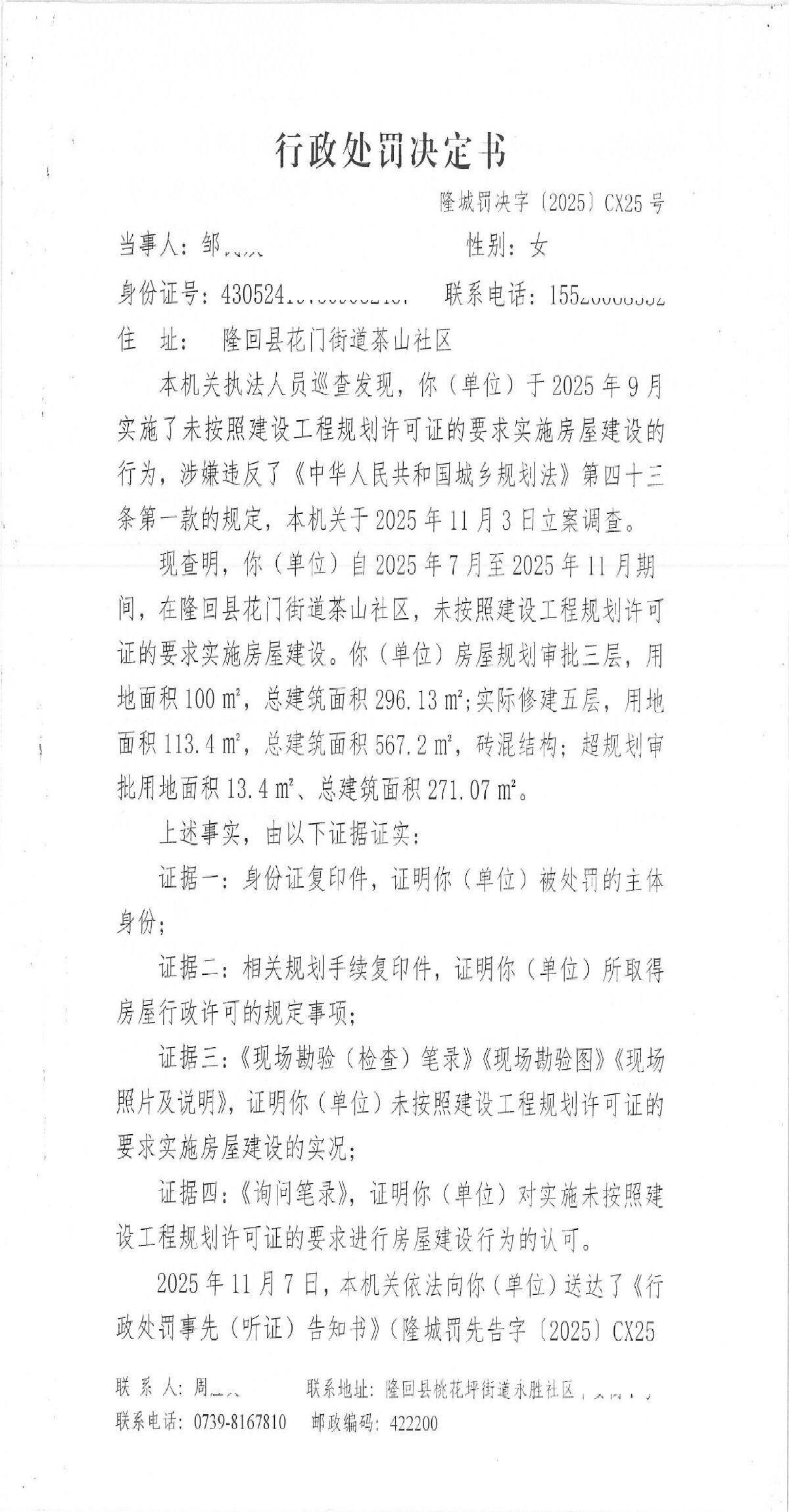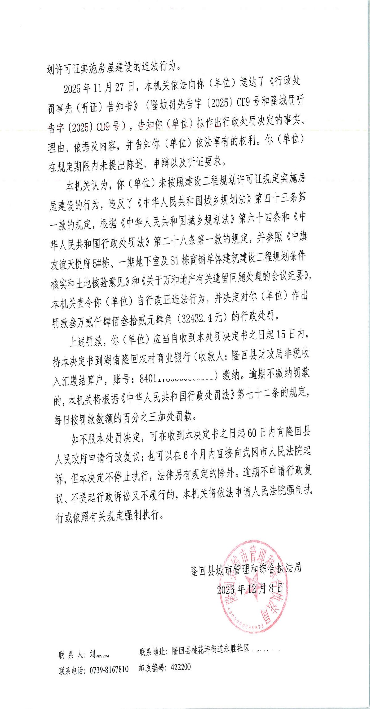 隆回县城市管理和综合执法局2025年12月份行政处罚决定书