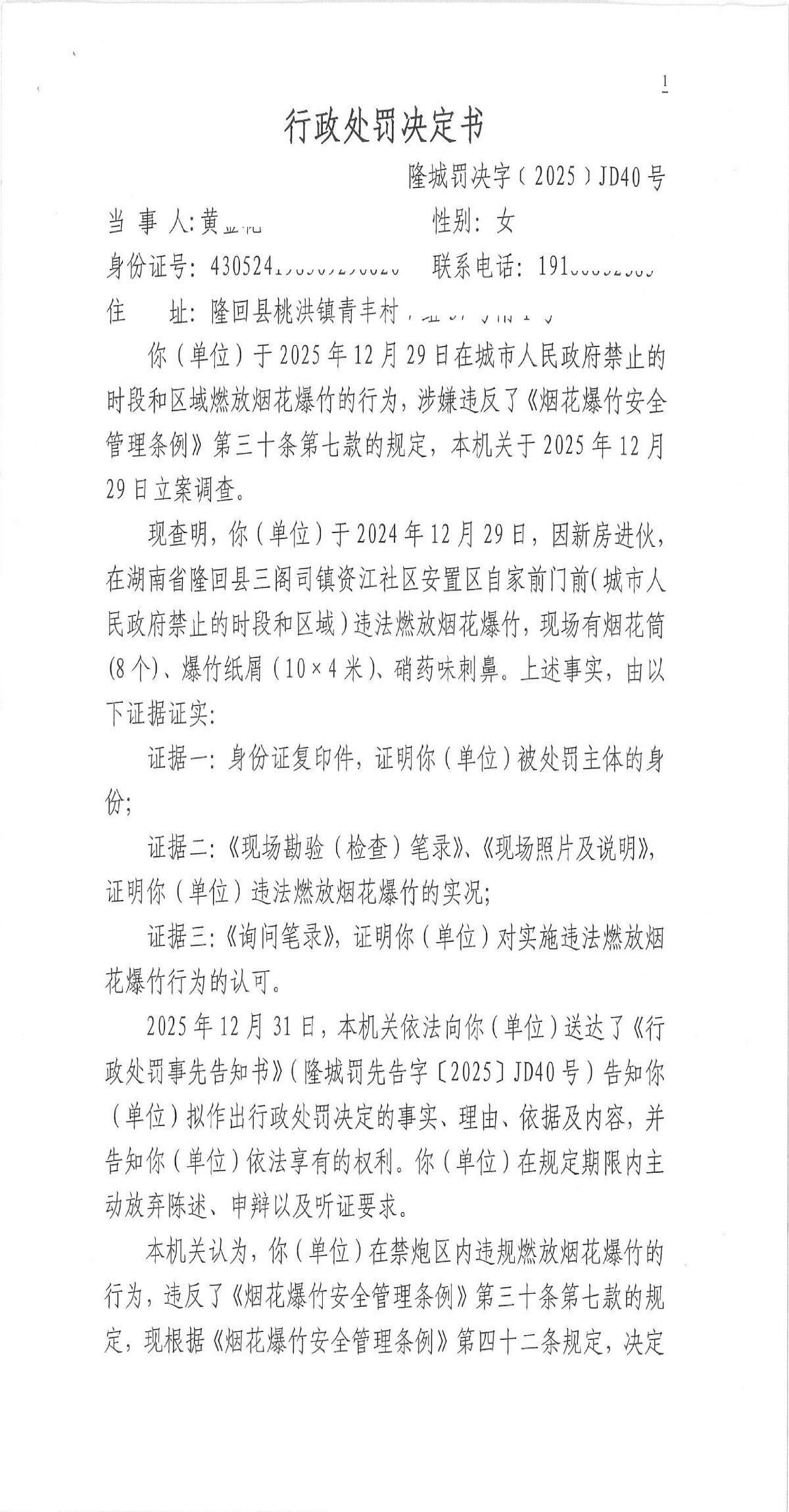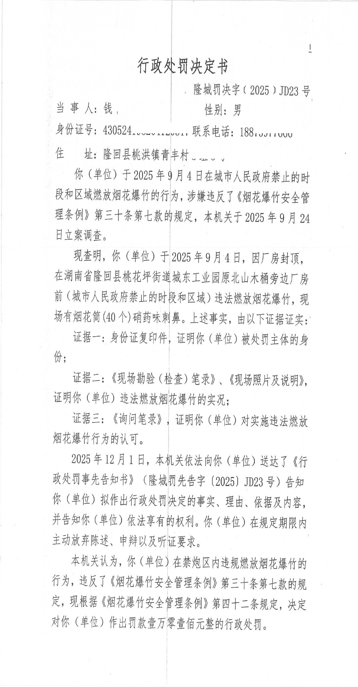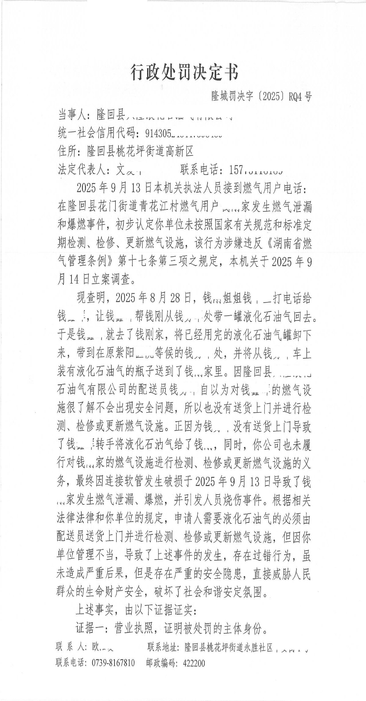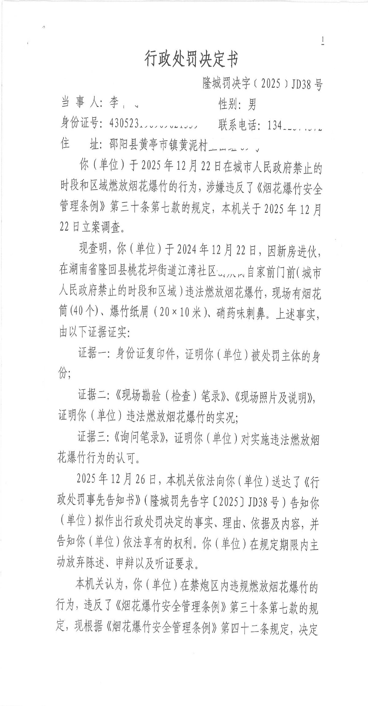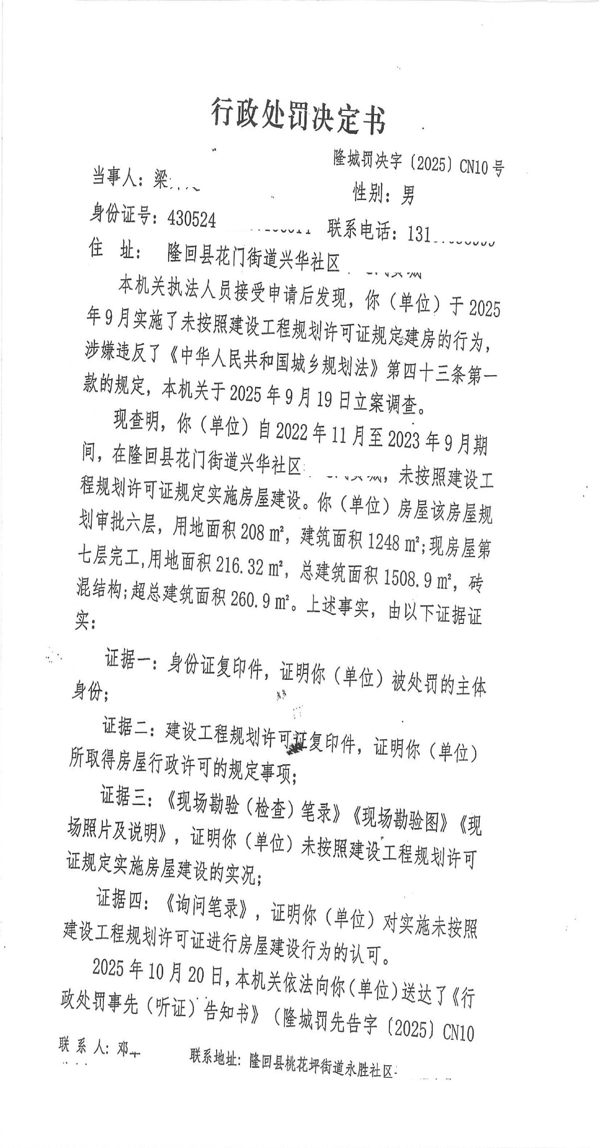 隆回县城市管理和综合执法局2025年12月份行政处罚决定书