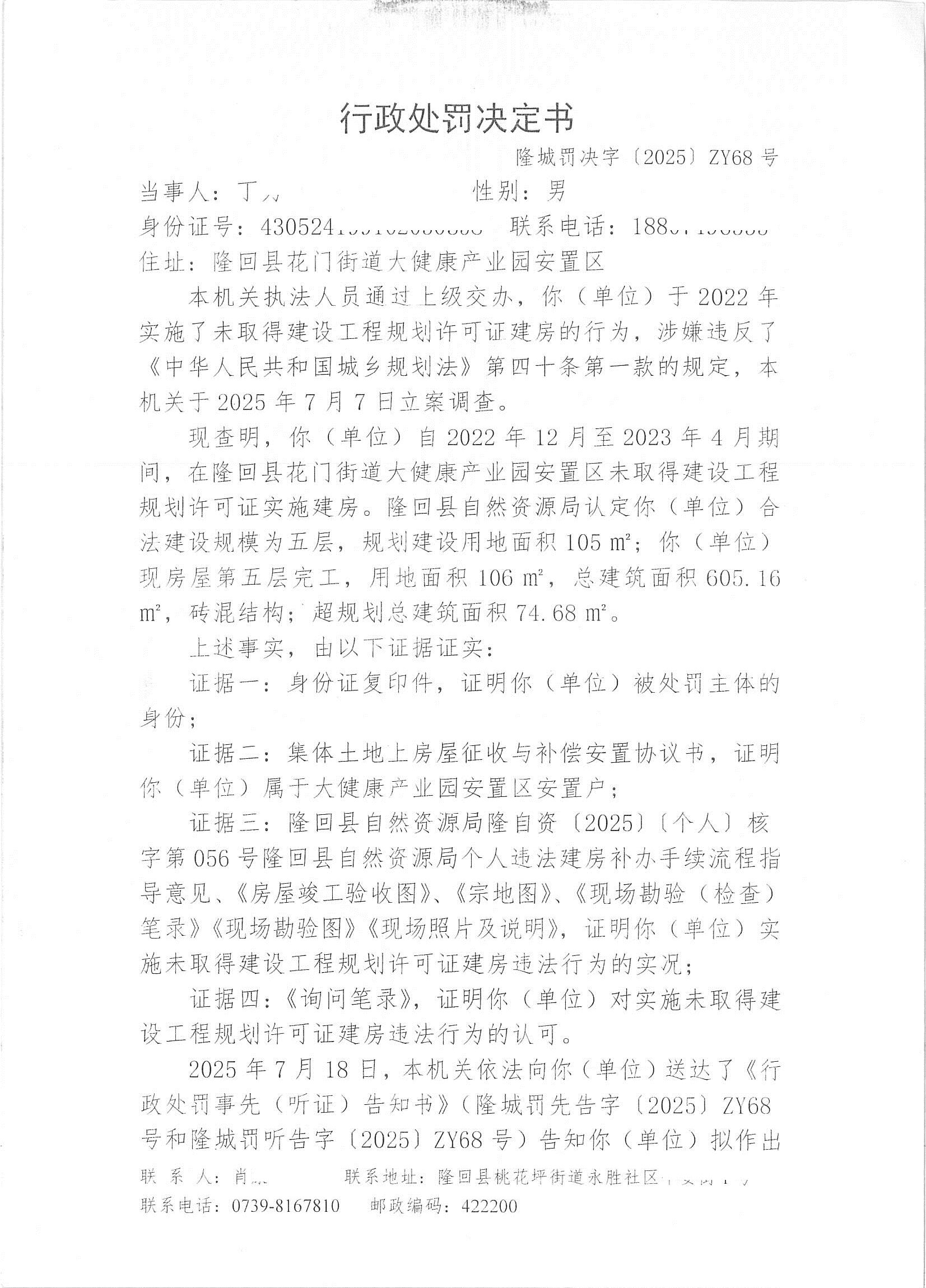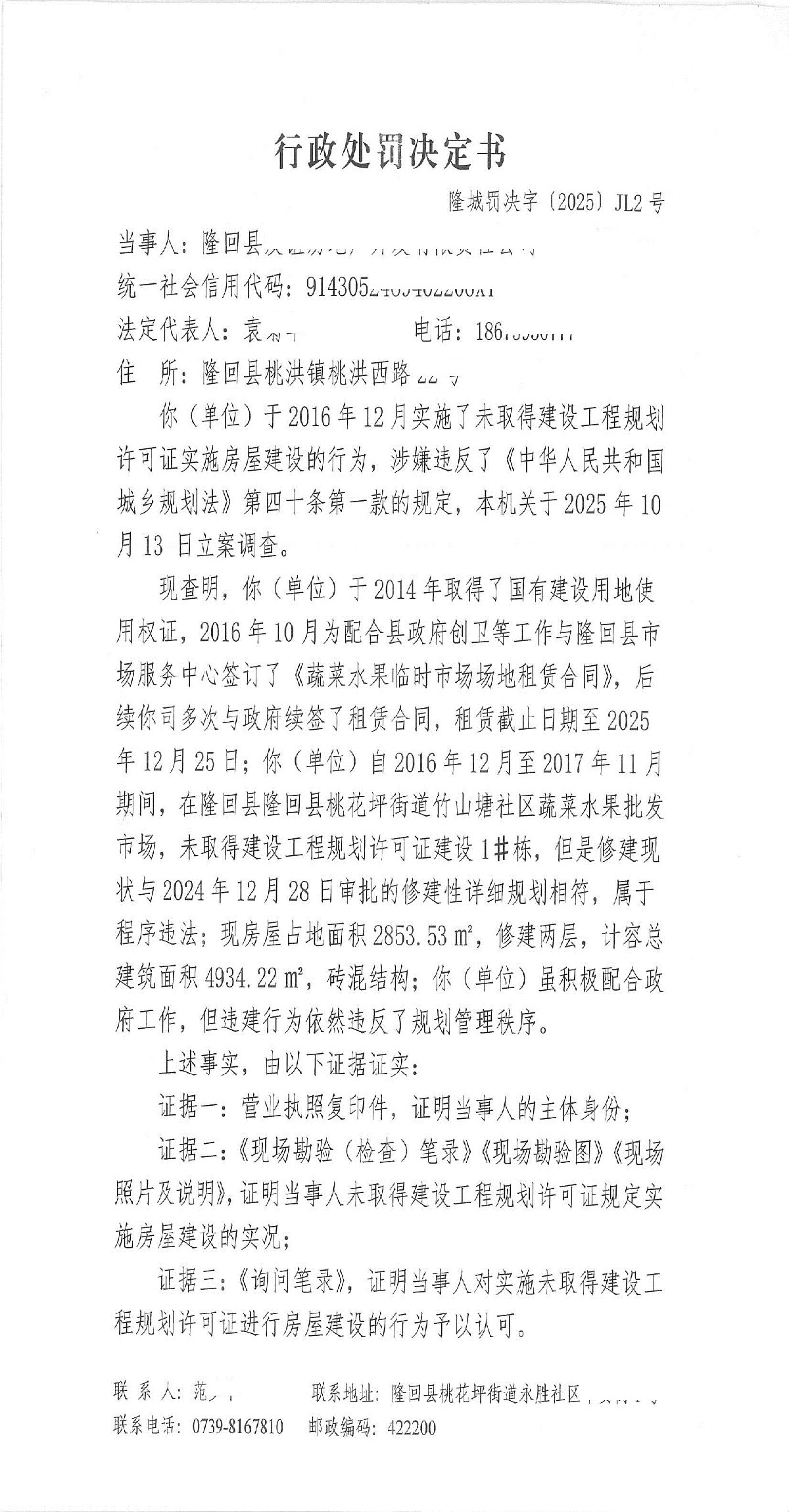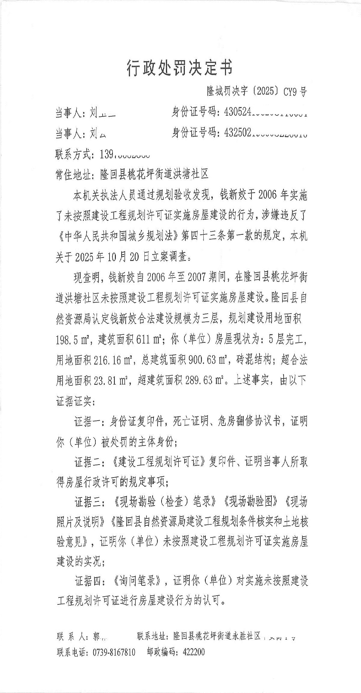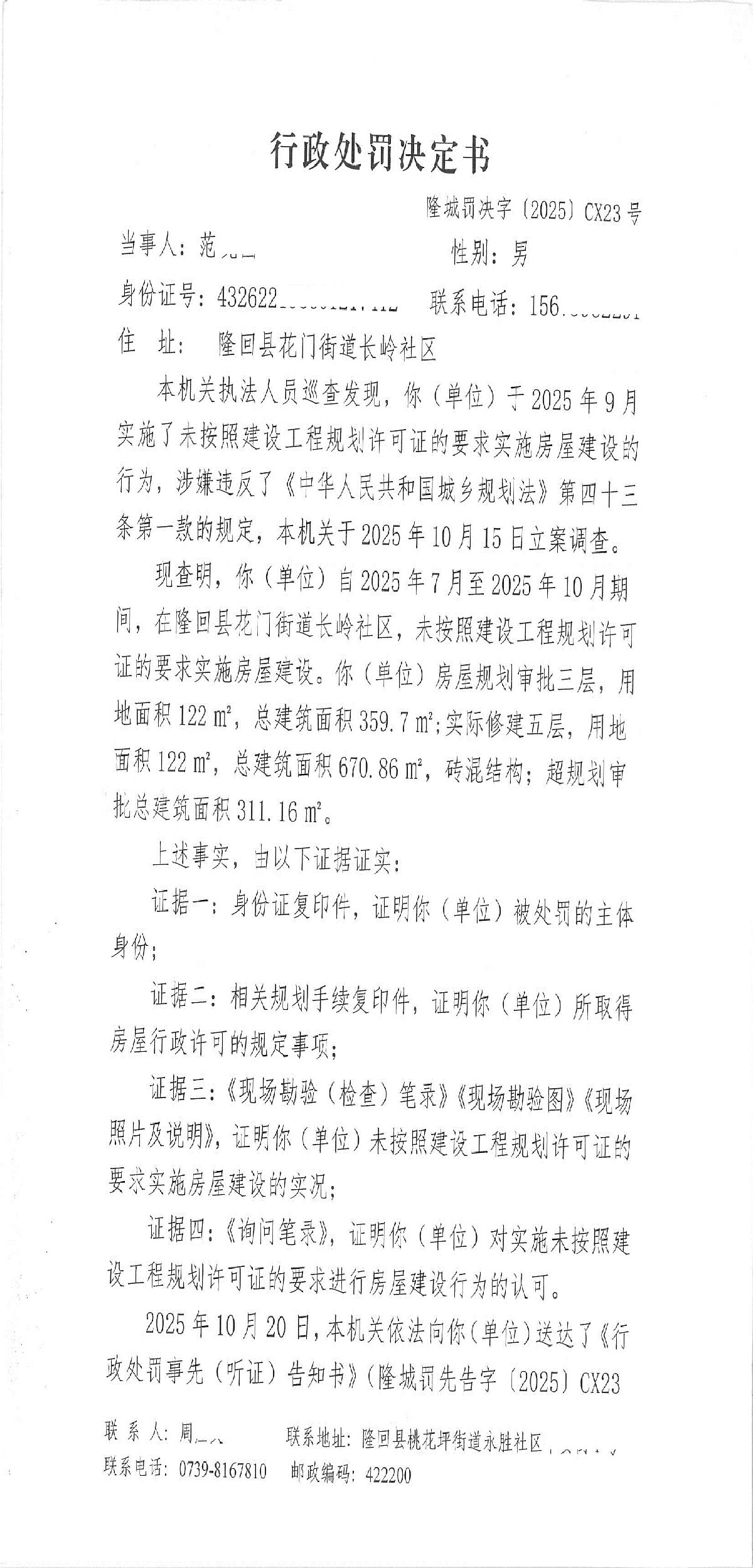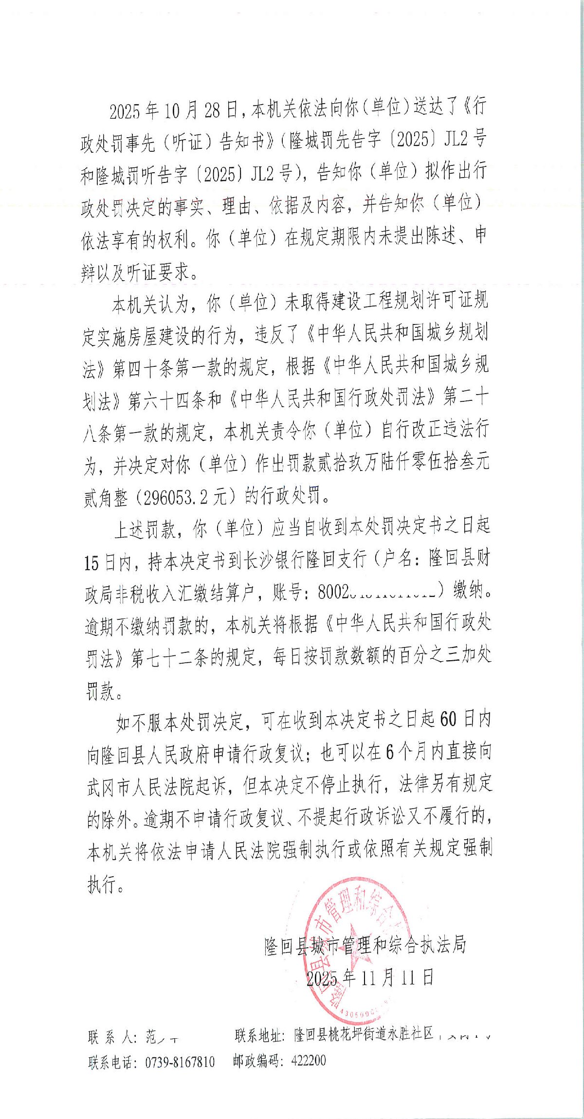 隆回县城市管理和综合执法局2025年11月份行政处罚决定书