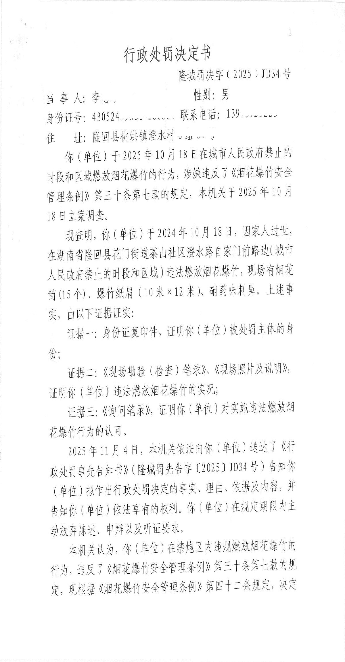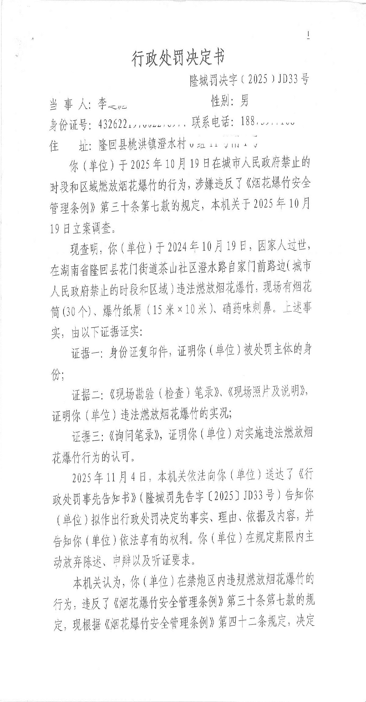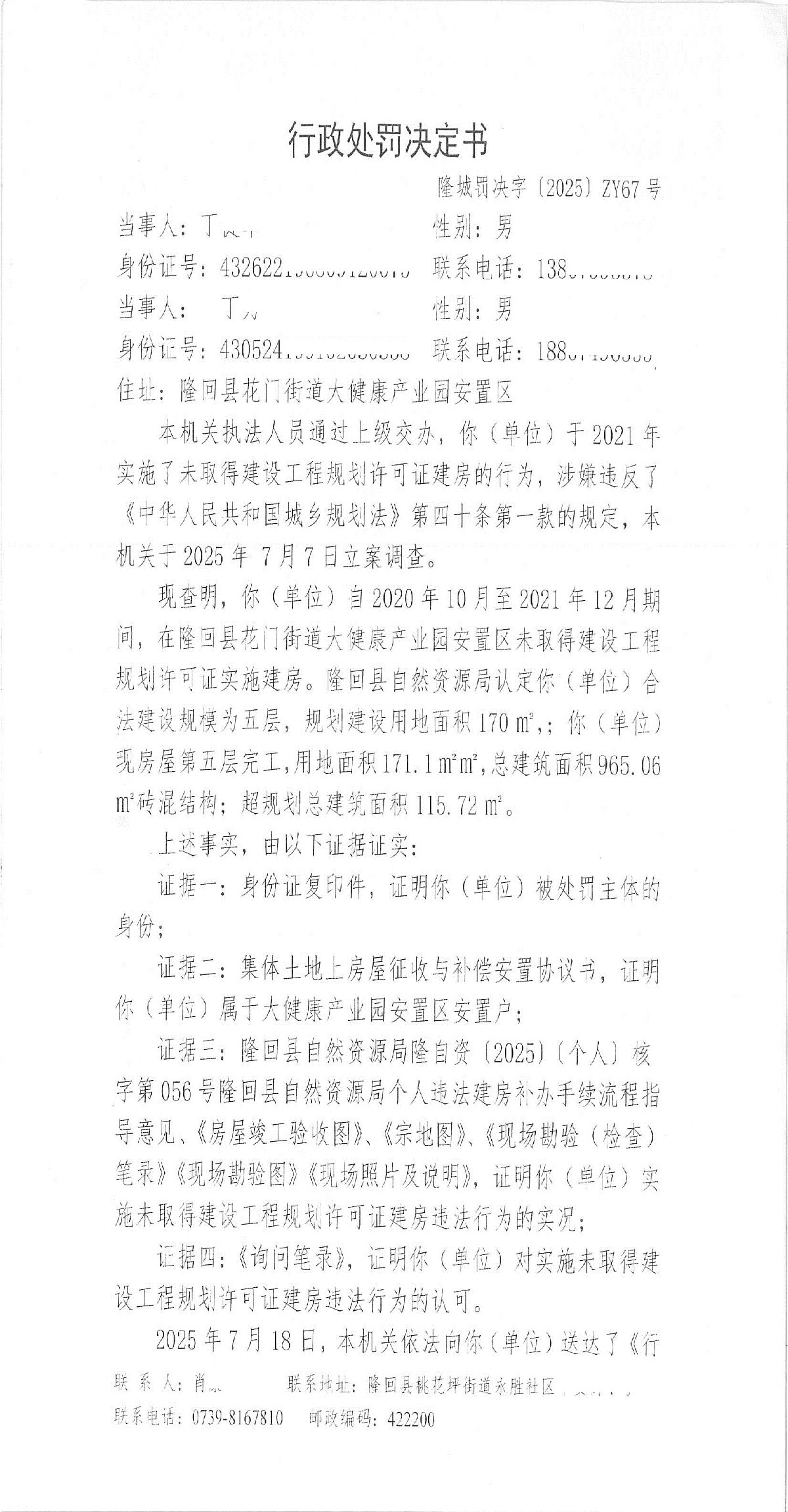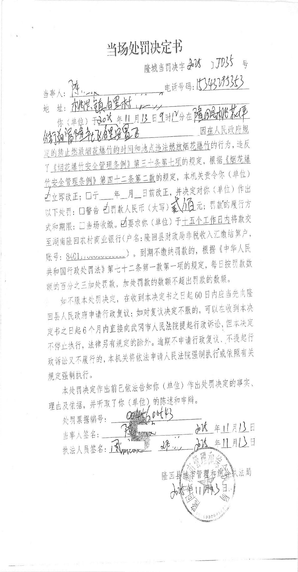 隆回县城市管理和综合执法局2025年11月份行政处罚决定书