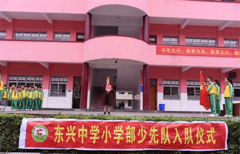 10月20日上午,东兴中学小学部在学校大操场举行少先队入队仪式。156名小学生戴上鲜艳的红领巾,光荣的加入了中国少年先锋队。