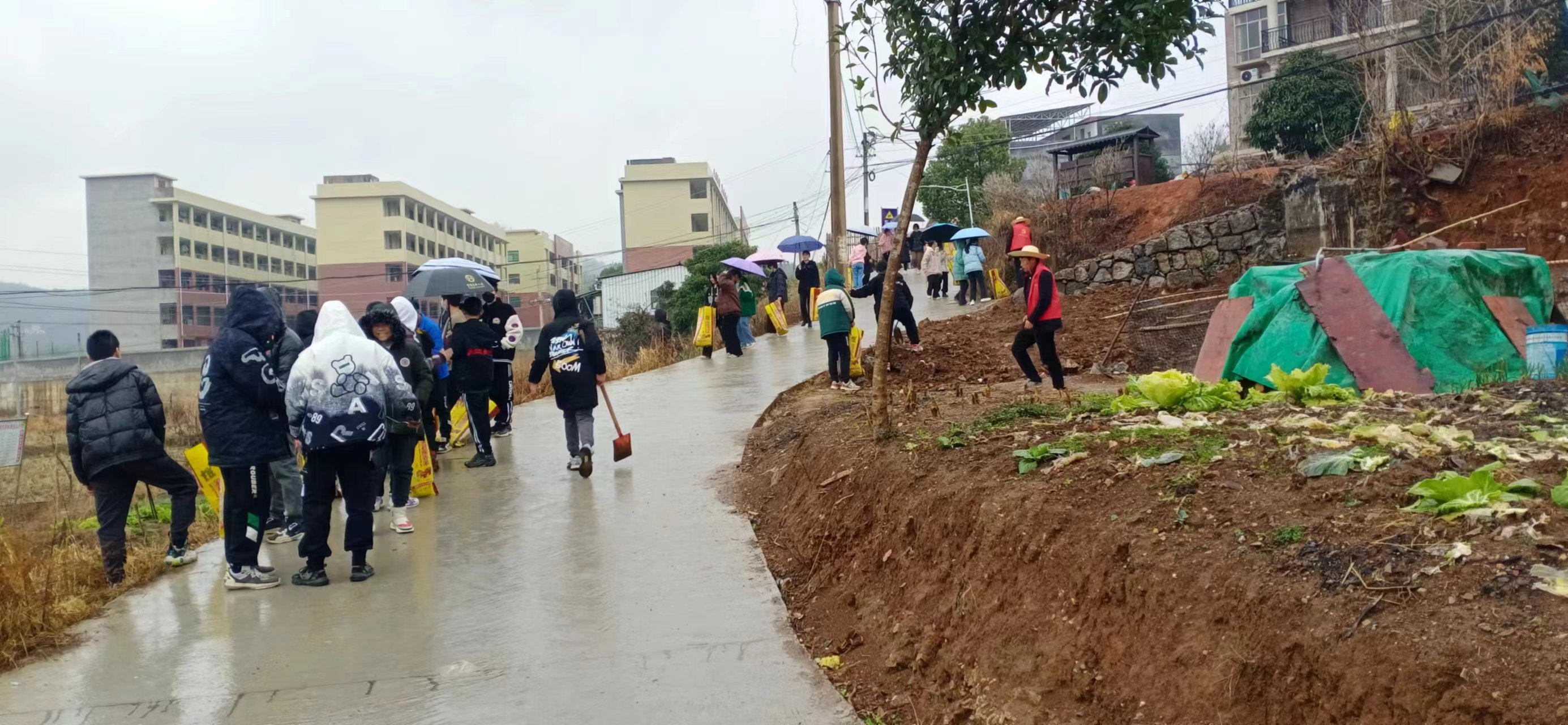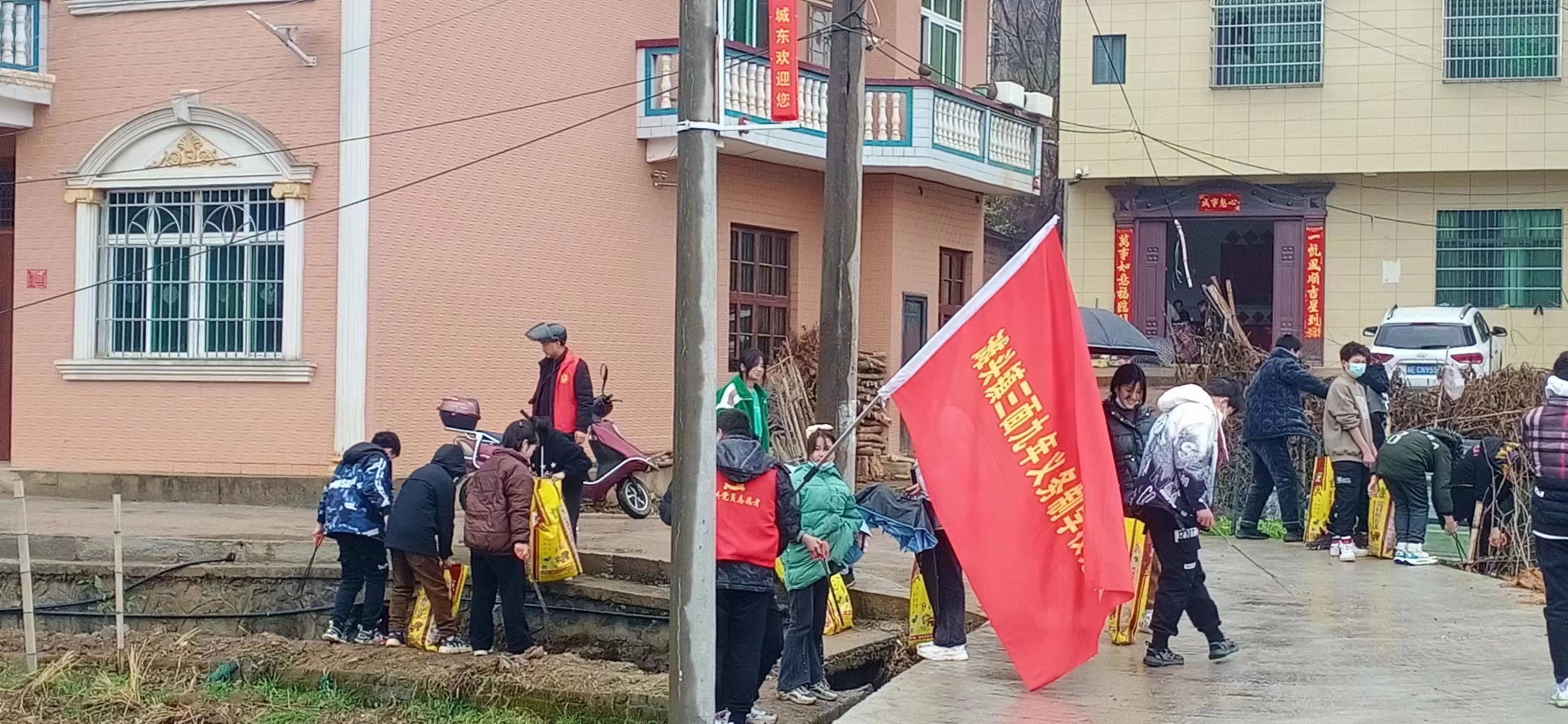 2月8日,滩头镇城东村镇村干部联合滩头镇三面九年义务制学校的学生志愿者在辖区开展卫生大清扫活动。