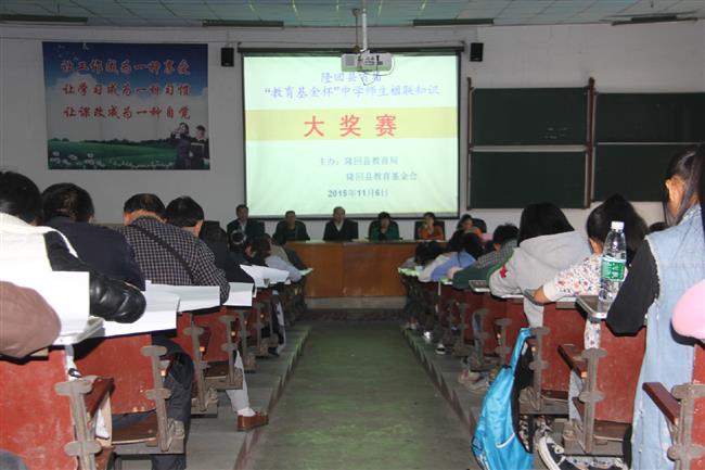 11月6日,隆回县教育局、隆回县教育基金会联合举办首届中学师生楹联知识大奖赛,比赛采用闭卷考试的方式进行,分教师组、学生组进行,来自该县59所初中的118名师生参赛。市楹联家协会主席邹宗德、县教育局副局长欧阳晓明现场指导比赛。为弘扬中华传统文化,隆回县教育局从去年开始,专门印发了初中楹联教材,从初一开始开设楹联课堂。