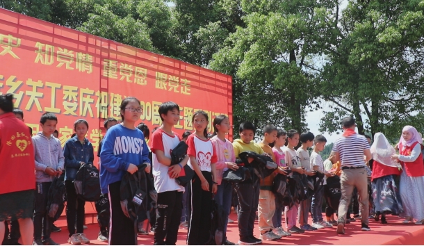在隆回县山界回族乡九年义务制学校举行建党100周年主题系列活动暨“点亮千名贫困家庭学子梦想之光”捐赠仪式上,重庆百钰顺科技有限公司代表、隆回县“红心林”志愿者服务联合会为50名贫困学子发放了5万元助学金和50份学习生活用品。