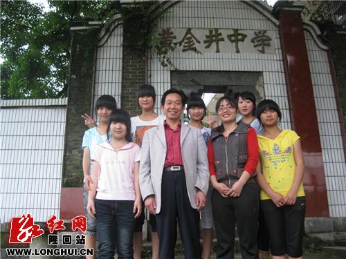 中国隆回网6月5日讯(通讯员 胡富元)为了满足初中毕业生感谢恩师的教育之情,近日,隆回县金石桥镇中心学校推出把传统的"酒宴谢师"改为"合影谢师",得到毕业生的追捧,他们在毕业前夕,纷纷与恩师合影留念。图为该镇黄金井中学122班罗靓(前左一)等毕业生与该中学校长郑时若(前左二)、班主任陈艳红(前右二)在校门口合影。