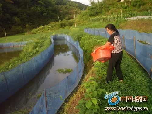 近年来,虎形山瑶族乡村民利用当地丰富、优质、无污染的水资源以及充足的草资源等自然优势,在村前、屋后、溪边开挖面积较小的水塘进行流水养鱼的模式。