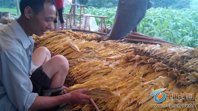 图为西洋江镇碧山村烟农宁超成在给第一烤烟叶分级