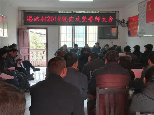 2月25日上午,六都寨镇港洪村组织召开脱贫攻坚誓师大会,片线领导、驻村帮扶工作队成员、村支两委、全体党员、村名代表组长参加了会议。