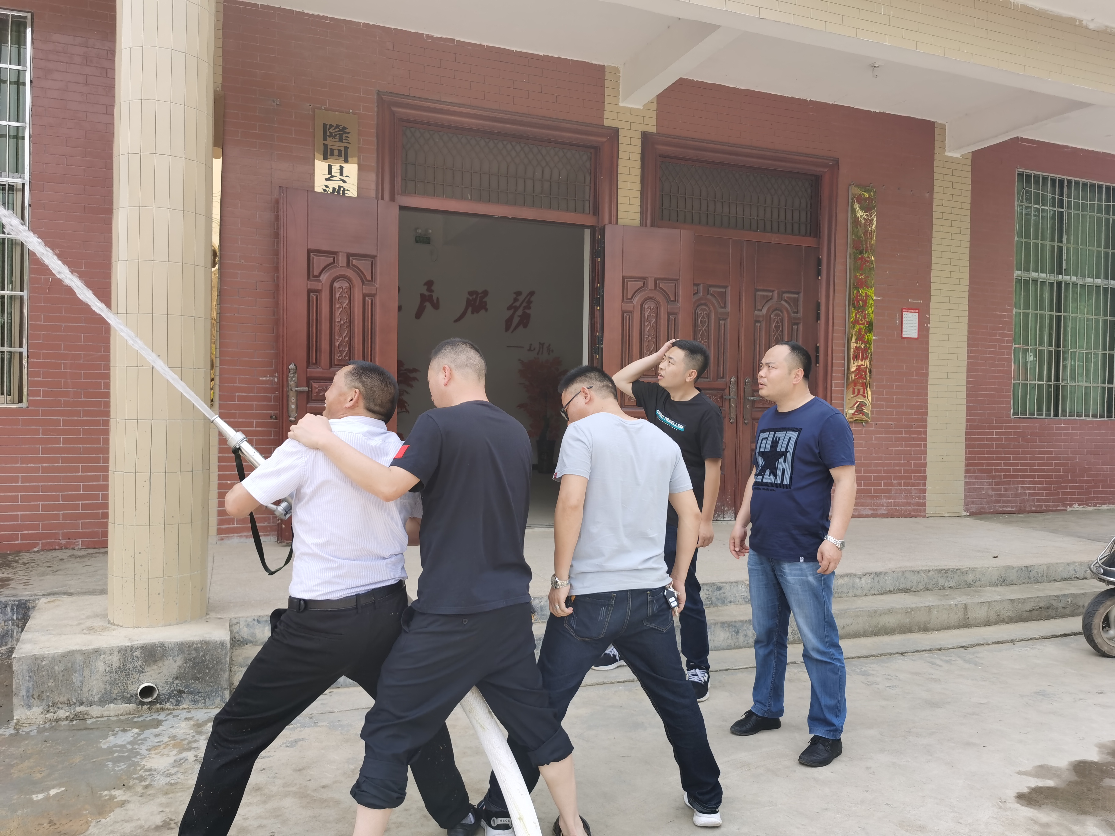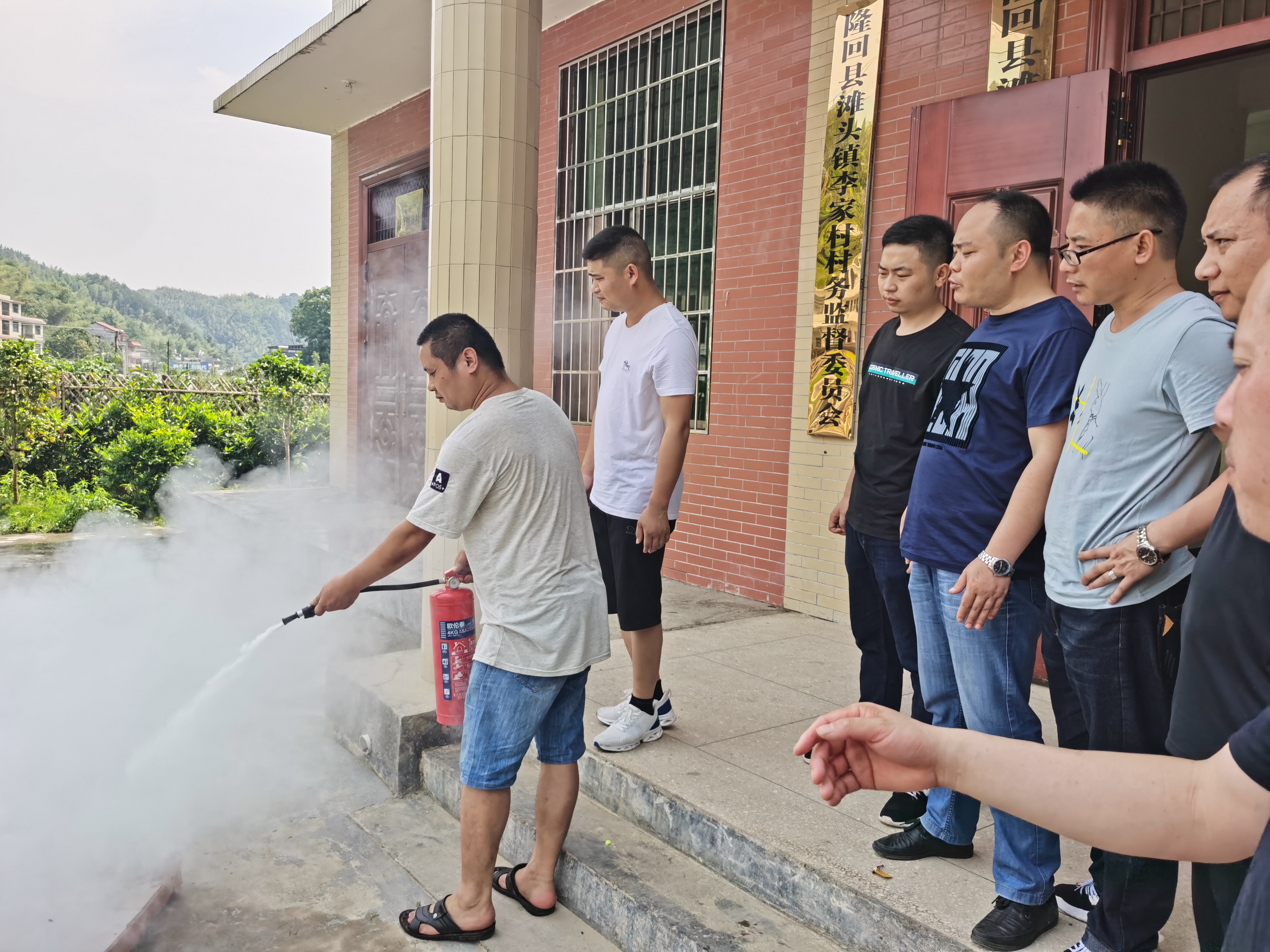 6月9日,滩头镇常务副镇长杨小安、组织委员袁博带领镇消防队队长颜学东在滩头镇李家村进行消防模拟演练,现场教学如何使用消防泵、灭火器等消防器材。