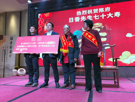 1月17日,从隆回县关工委获悉:当日,隆回县七江镇退休教师陈日香在70岁寿宴上,将儿子及亲友所赠的52616元祝寿金悉数捐赠给七江镇中心学校,设立助学金专项帮扶家庭困境学生完成学业。这一温暖举动在当地迅速传开,获得广泛赞誉。