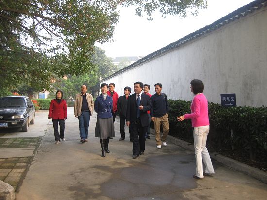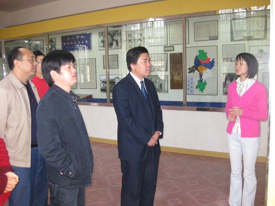 李明海一行在溆浦县委常委、宣传部长张娟(左三)陪同下参观向警予故居。