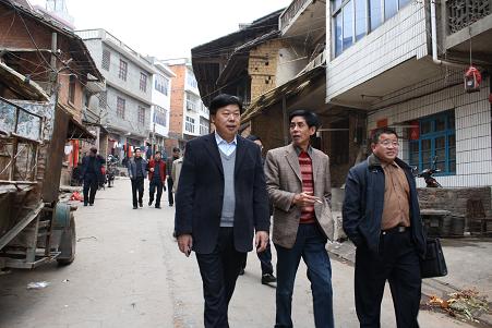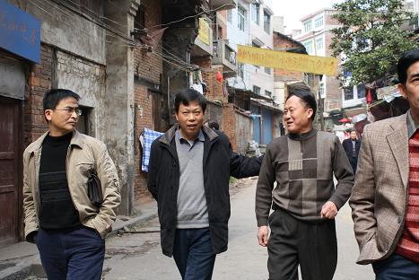 钟义凡(正中)周卫臣(左二)在考察工商下街