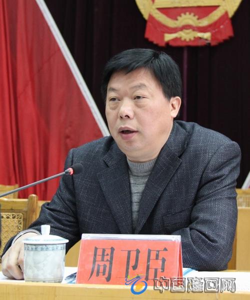 县委副书记、县长、县创卫指挥部指挥长周卫臣在会上发表重要讲话
