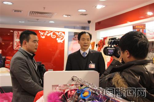 记者在谭志勇的服饰店采访