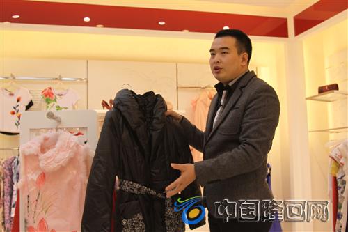 花姿悦国际服饰集团有限公司董事长谭志勇介绍公司产品