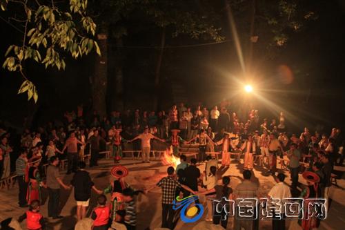 热情好客的瑶族人民举行了盛大的篝火晚会热烈欢迎湖南经视总监周雄、副总监肖光辉一行的到来。篝火现场,崇木凼花瑶山寨的瑶族人民载歌载舞,向远道而来的客人献上他们最美好的祝福,并邀请周雄一起感受花瑶人民的民俗风情。