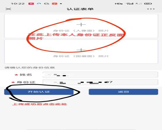 五、用户上传本人身份证照片,点击开始认证图标,进行人脸认证。