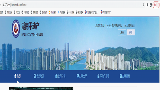 输入网址:http://www.hunanbdc.com/home(需要用谷歌浏览器),进入“湖南不动产一窗办事平台”网站。