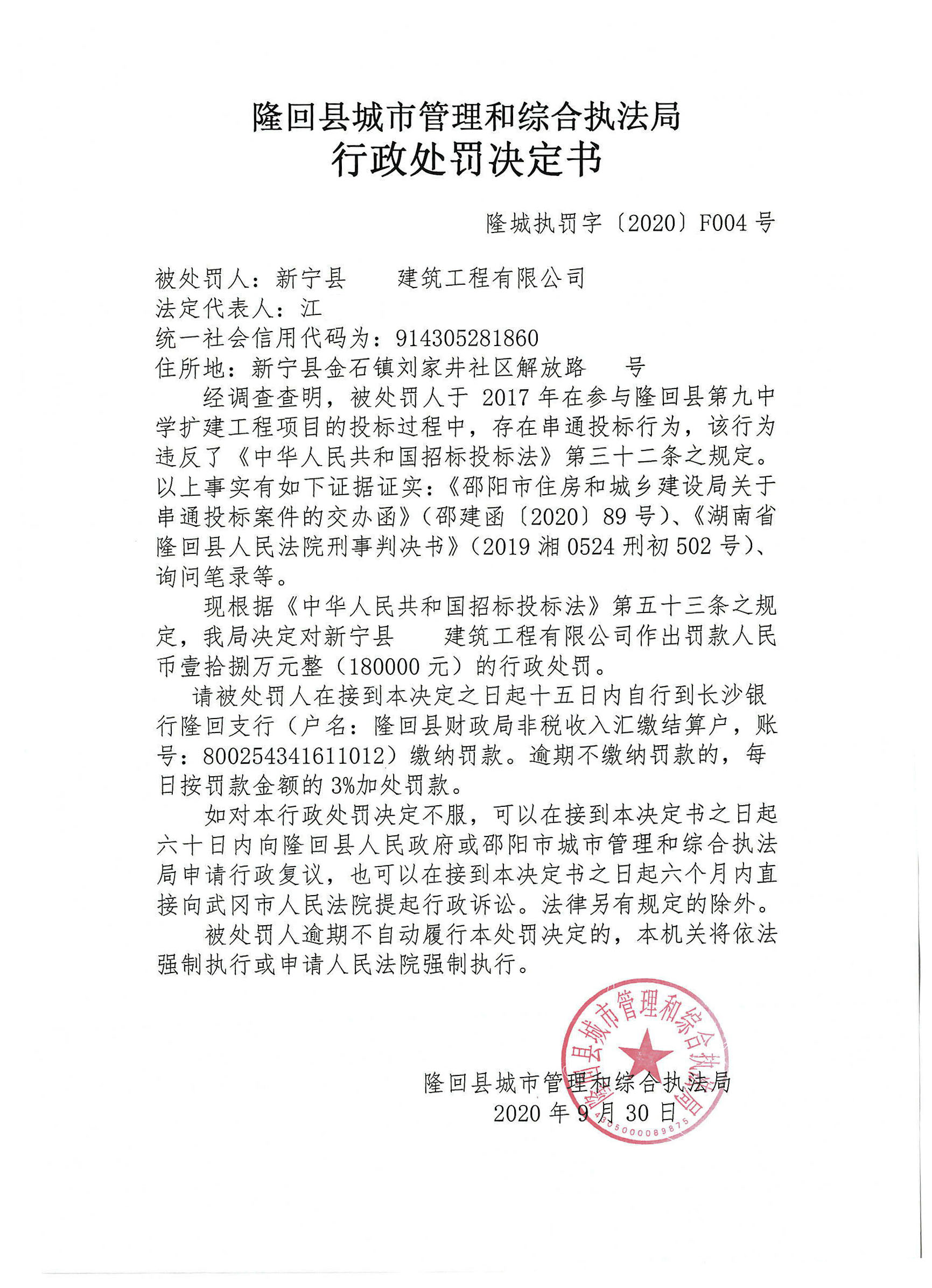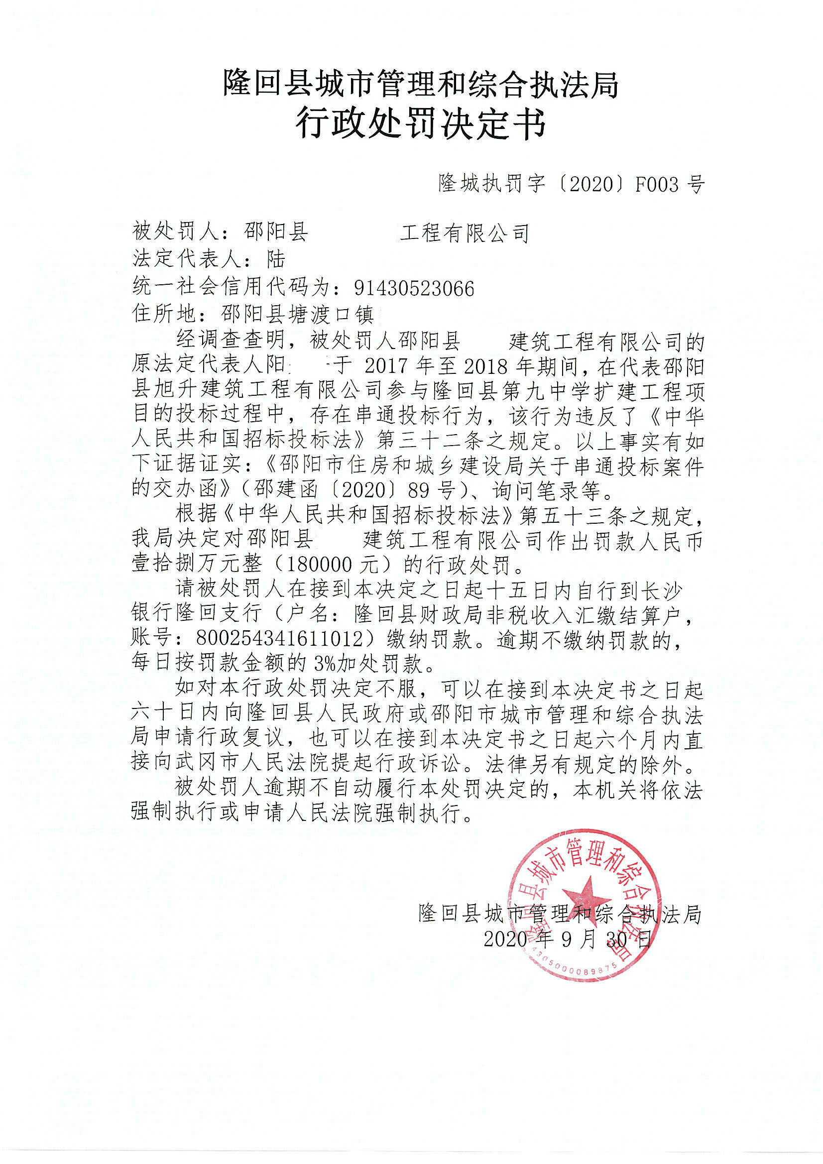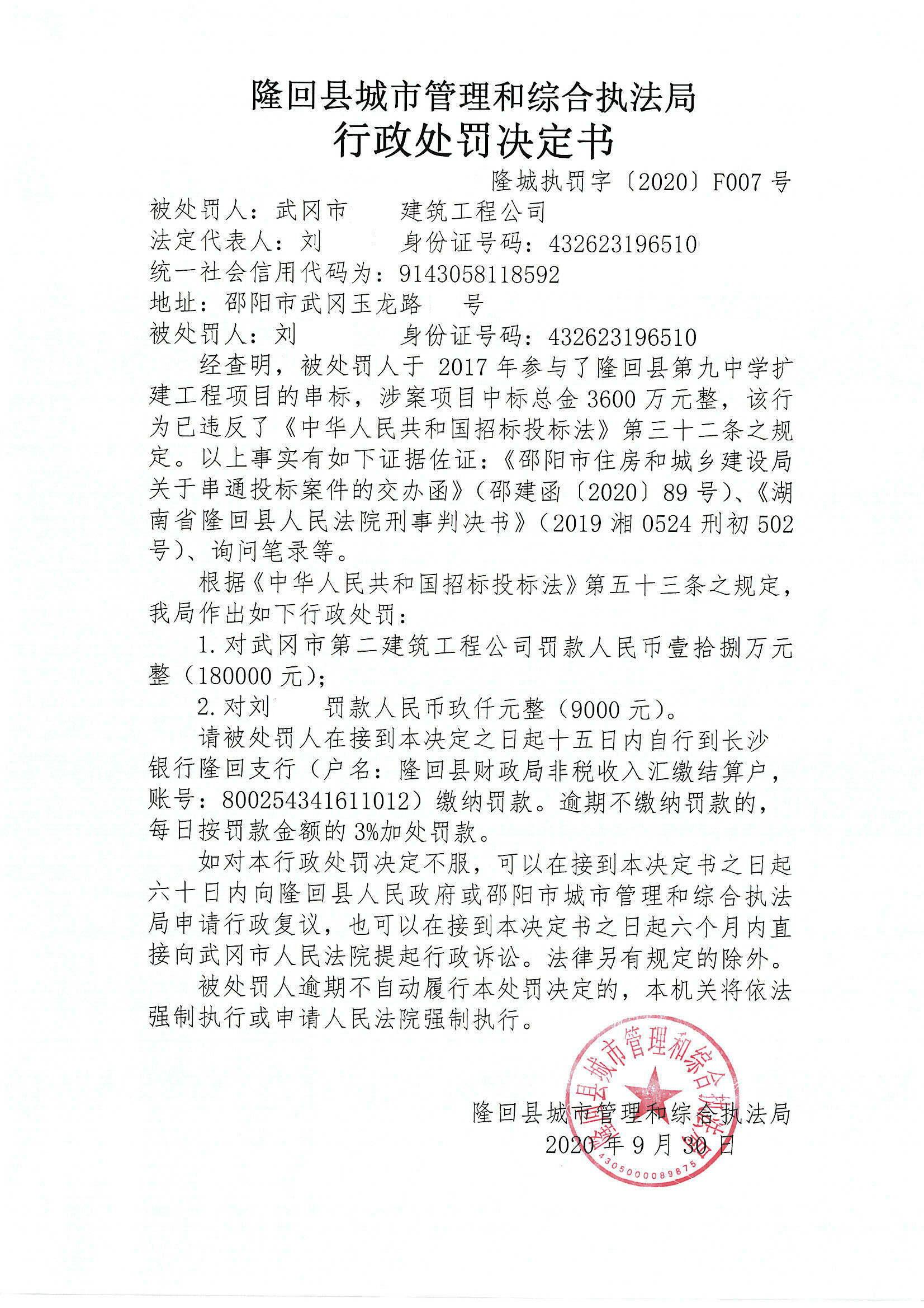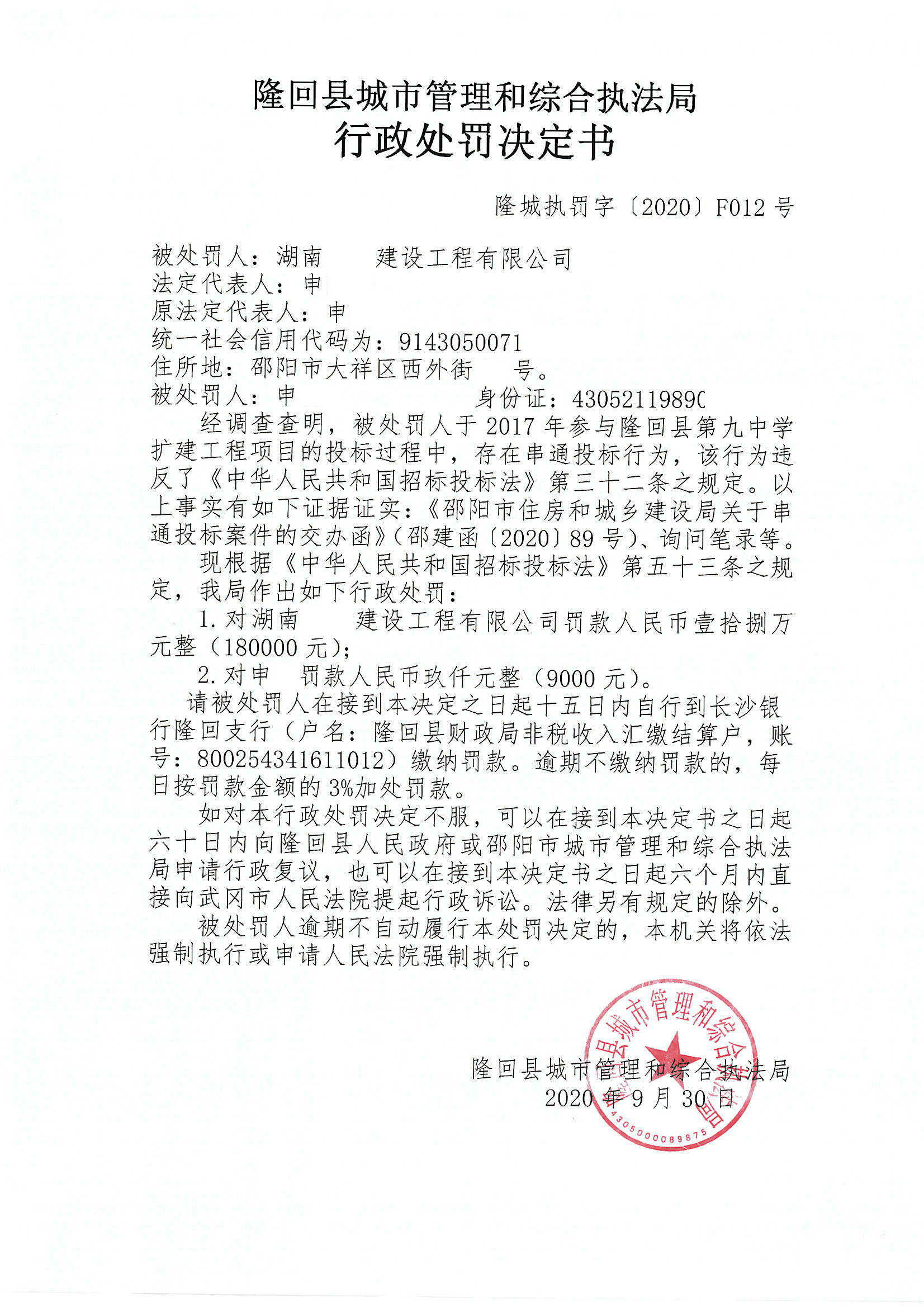 2020年隆回县城市管理和综合执法局行政处罚决定书公示(九月)