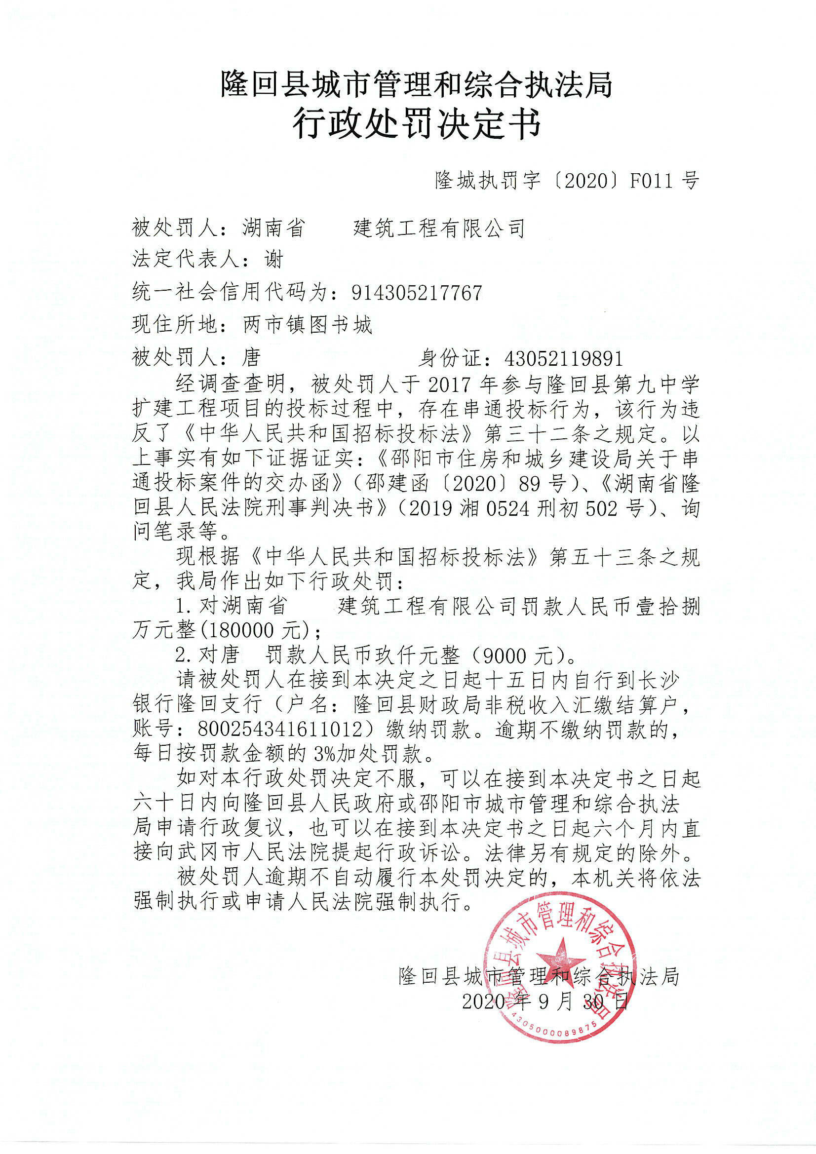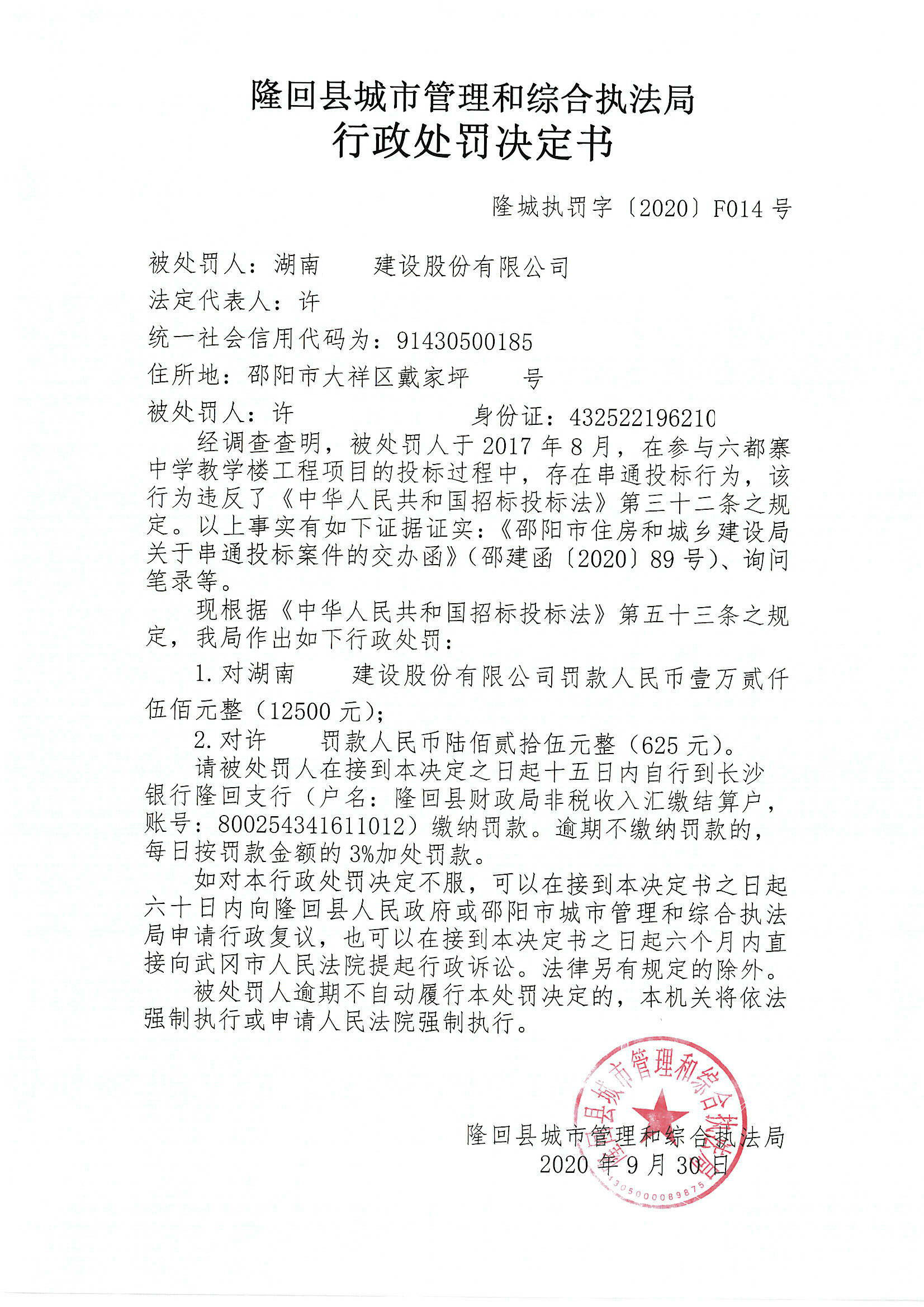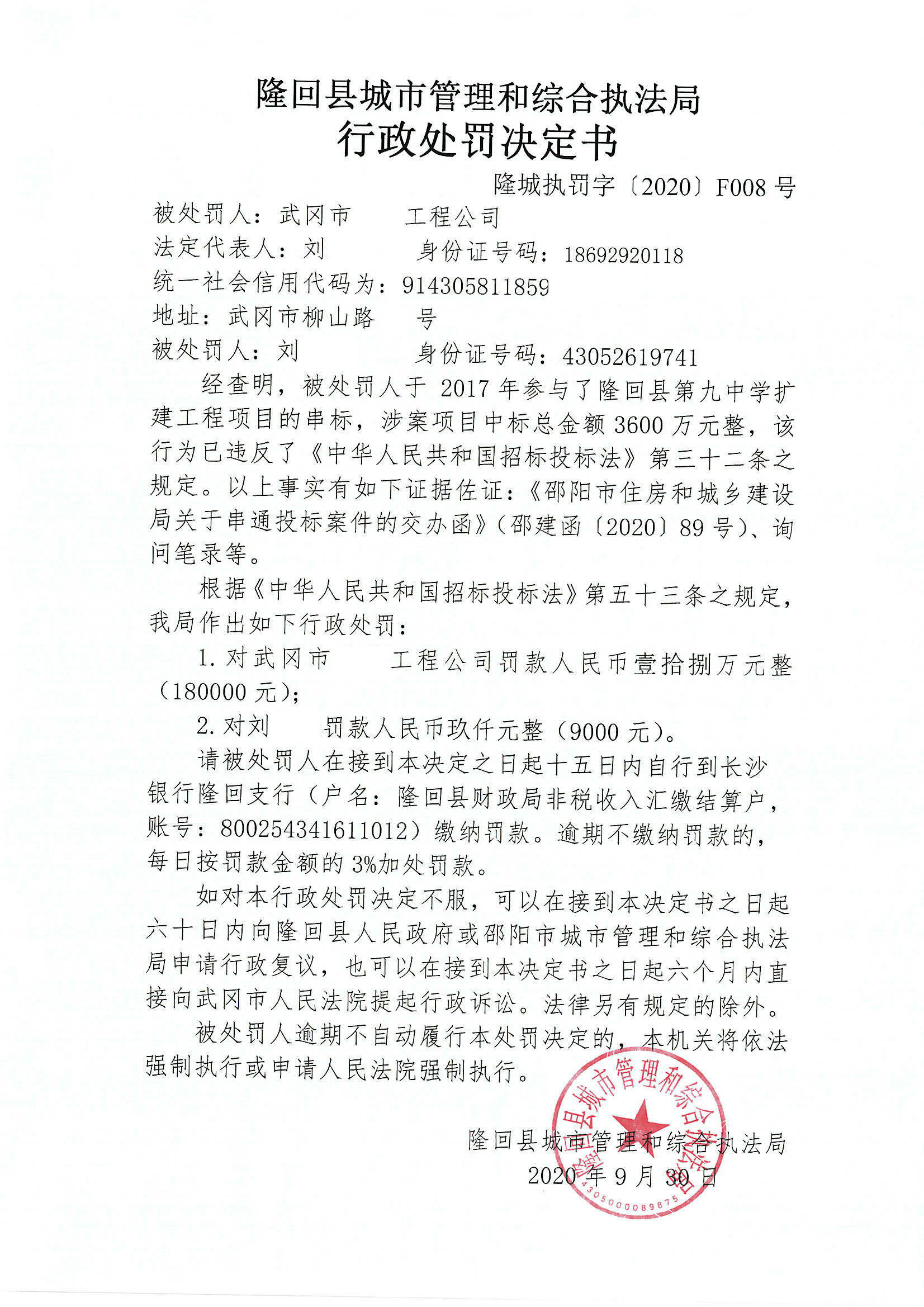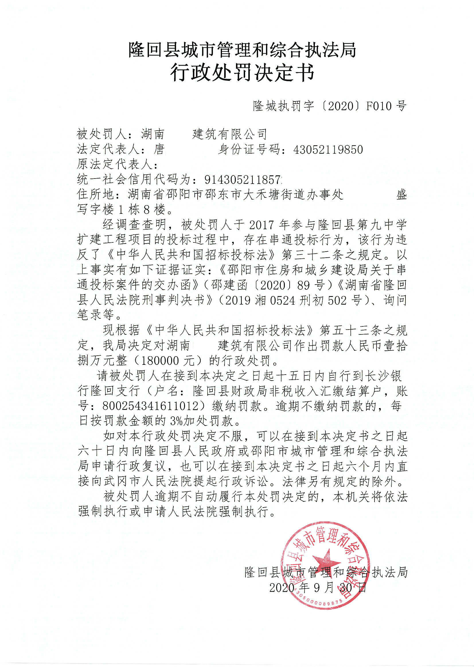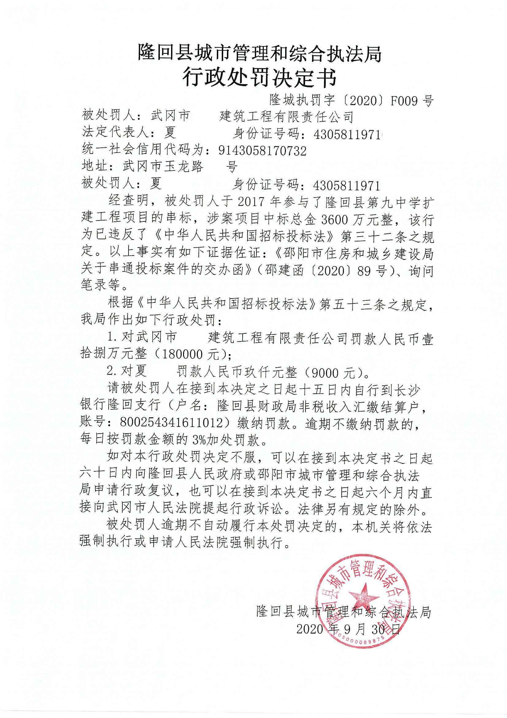 2020年隆回县城市管理和综合执法局行政处罚决定书公示(九月)