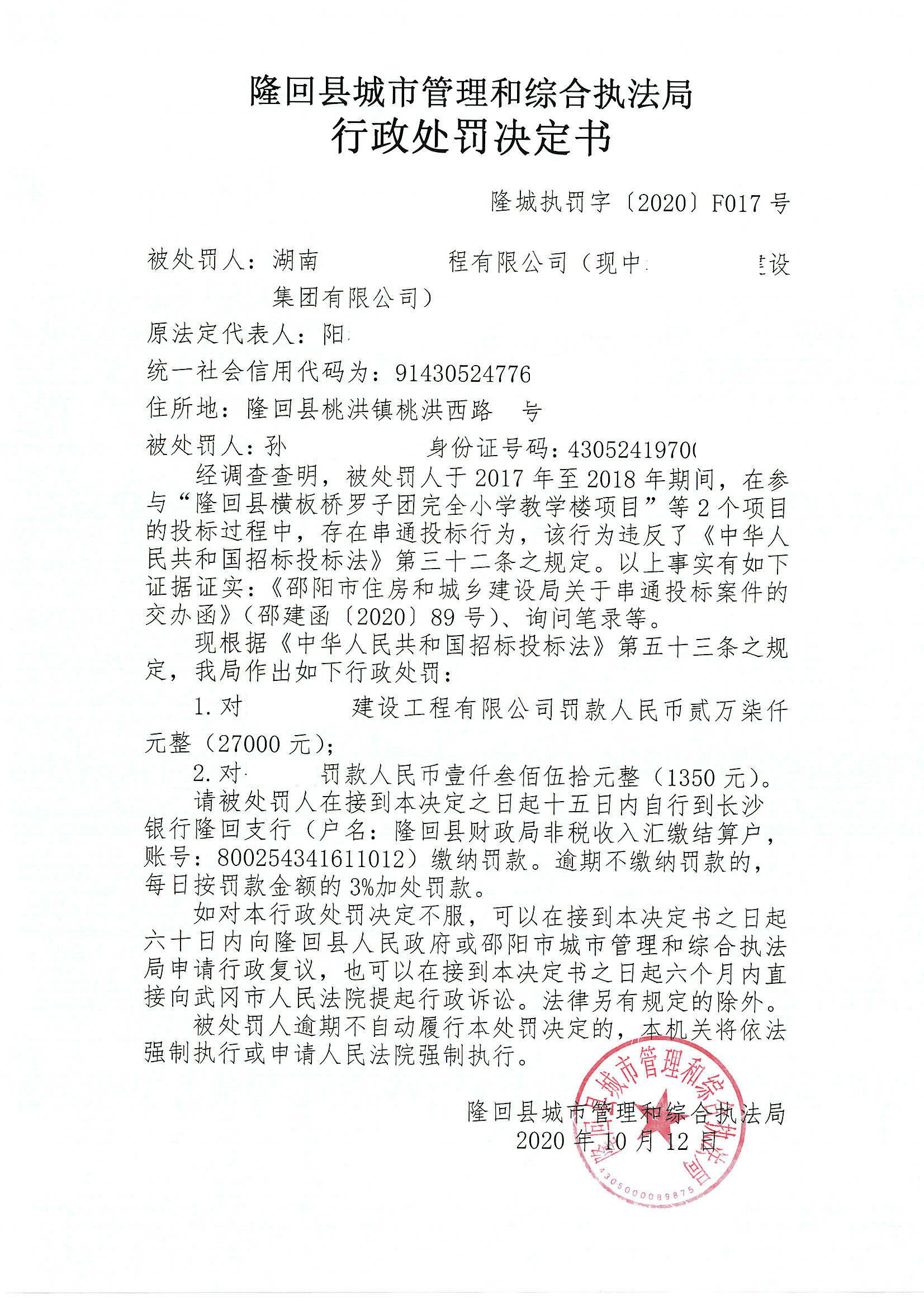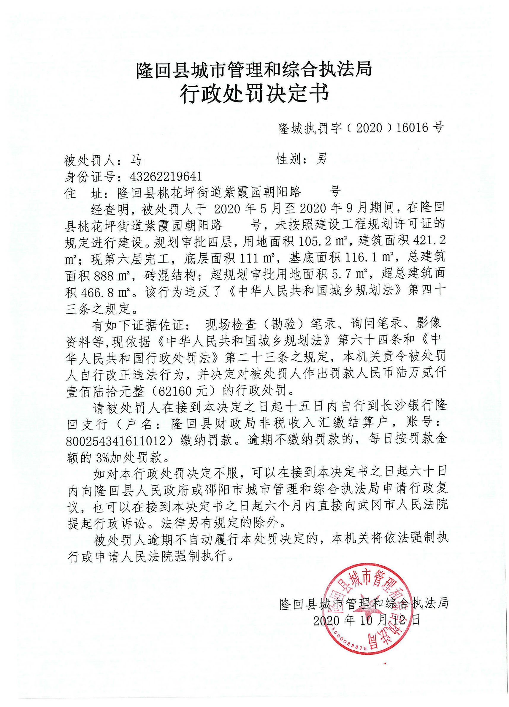 2020年隆回县城市管理和综合执法局行政处罚决定书公示(十月)