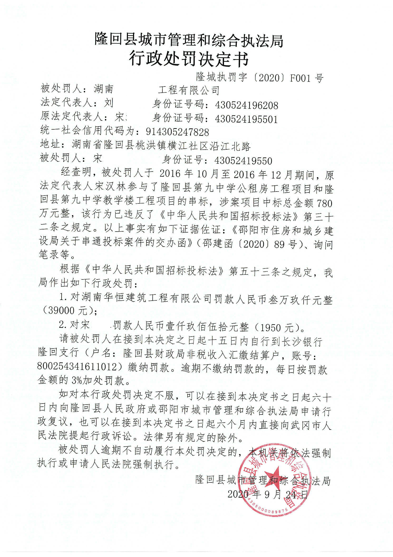 2020年隆回县城市管理和综合执法局行政处罚决定书公示(九月)