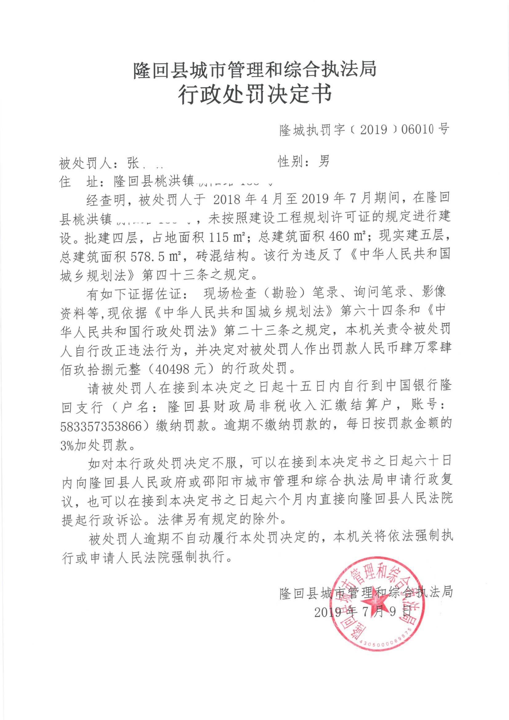 2019年隆回县城市管理和综合执法局行政处罚决定书公示(七月)