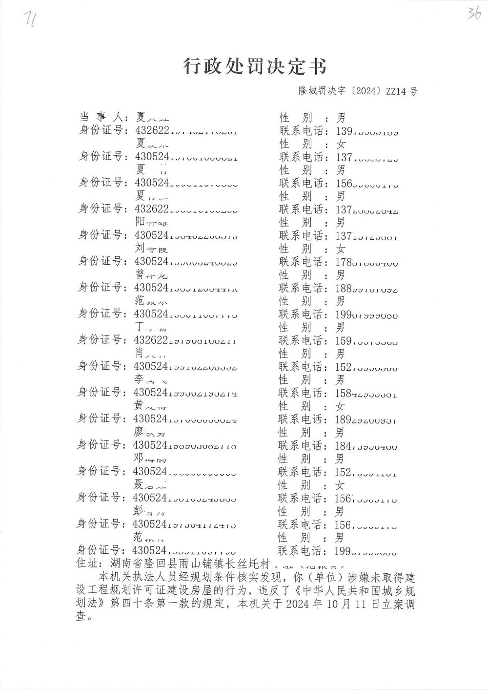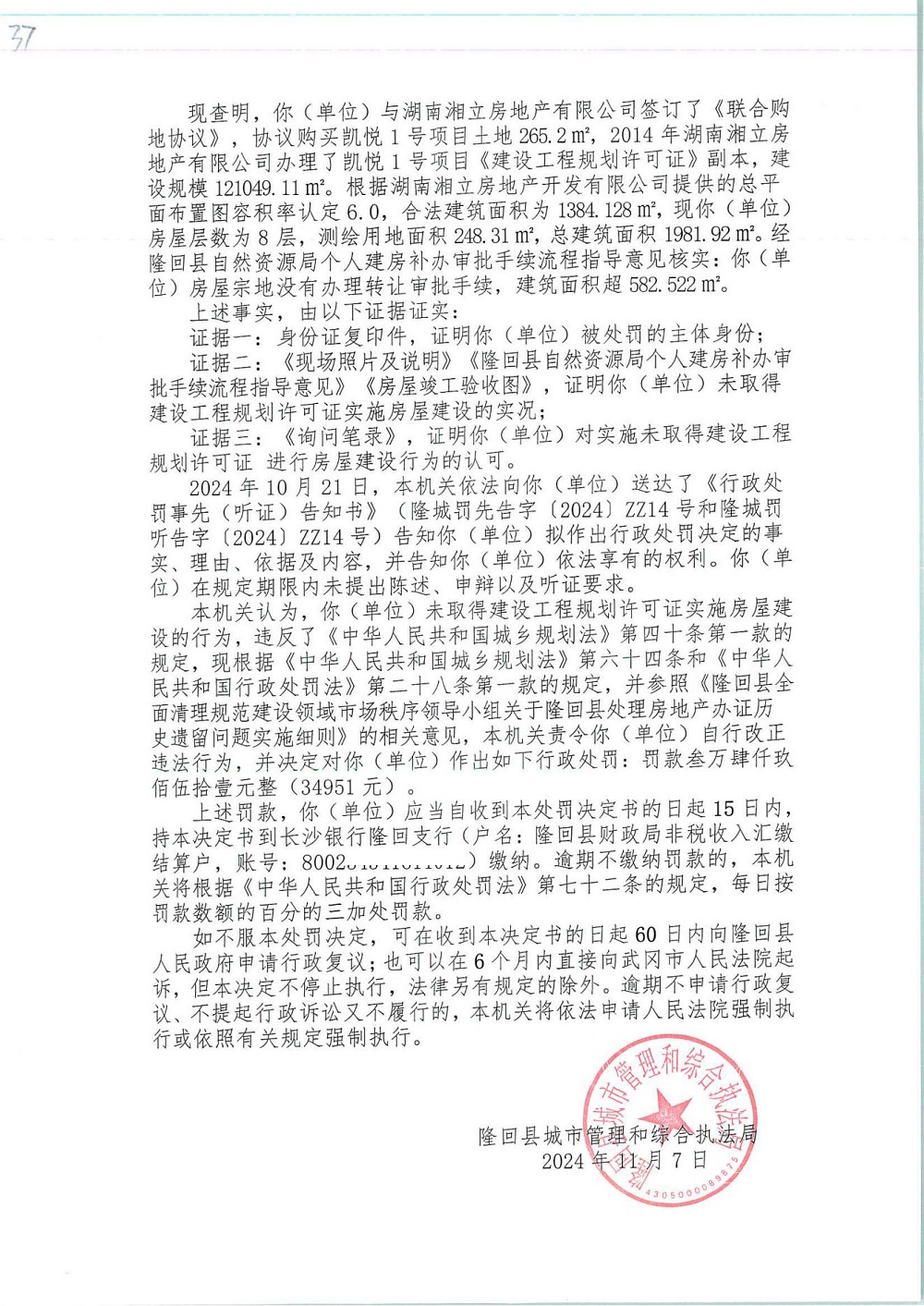 2024年隆回县城市管理和综合执法局行政处罚决定书(十一月份)