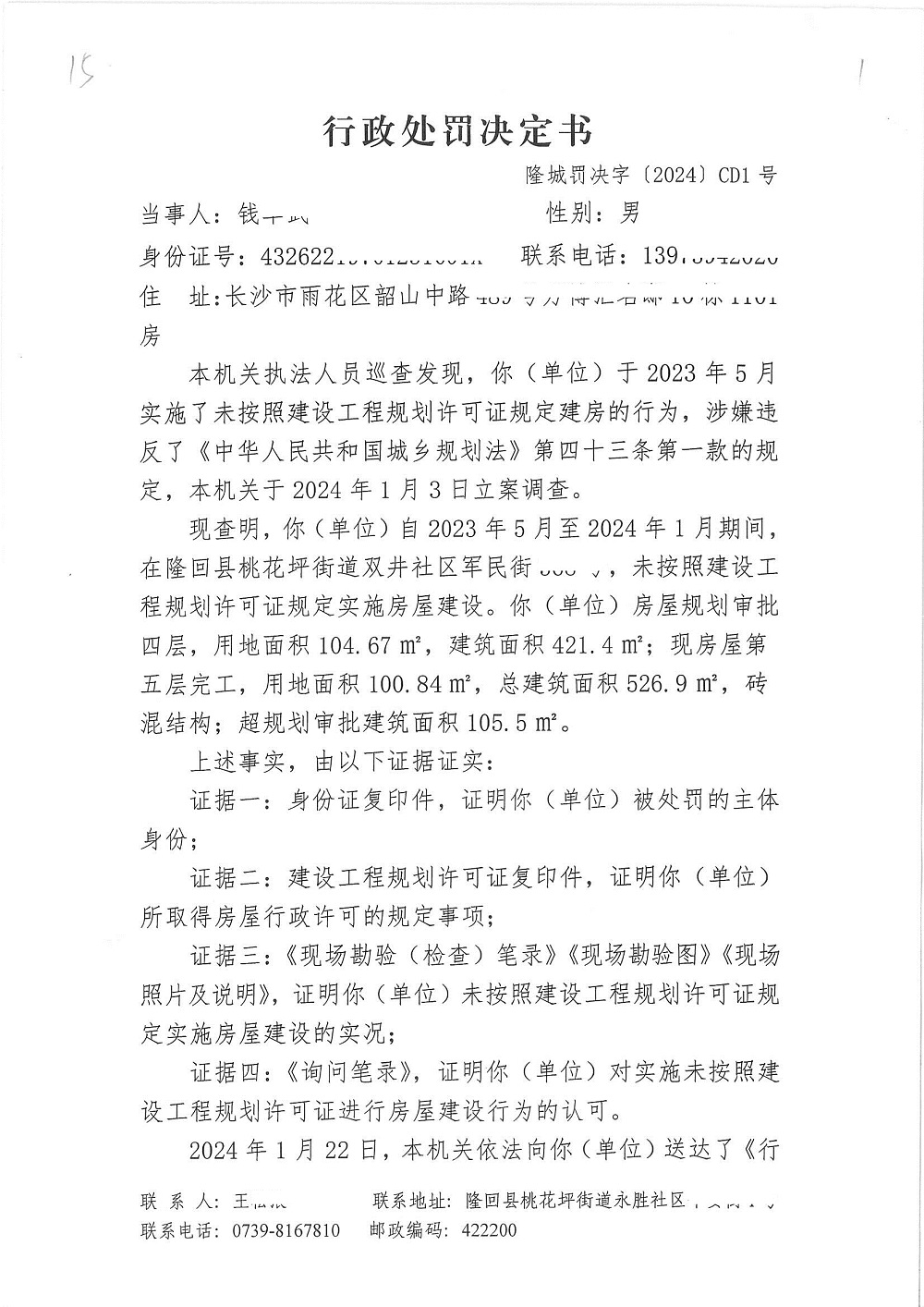 2024年隆回县城市管理和综合执法局行政处罚决定书(三月份)