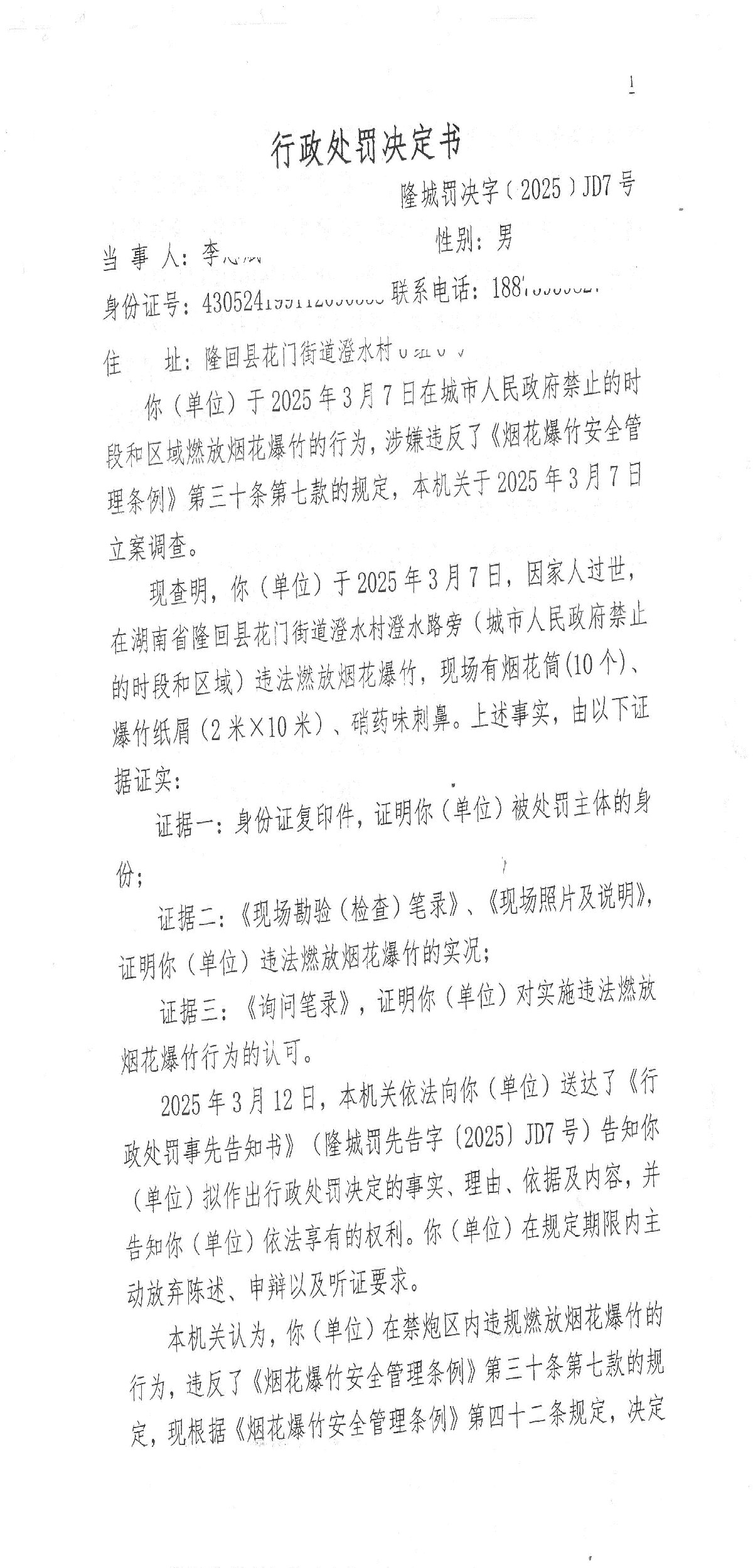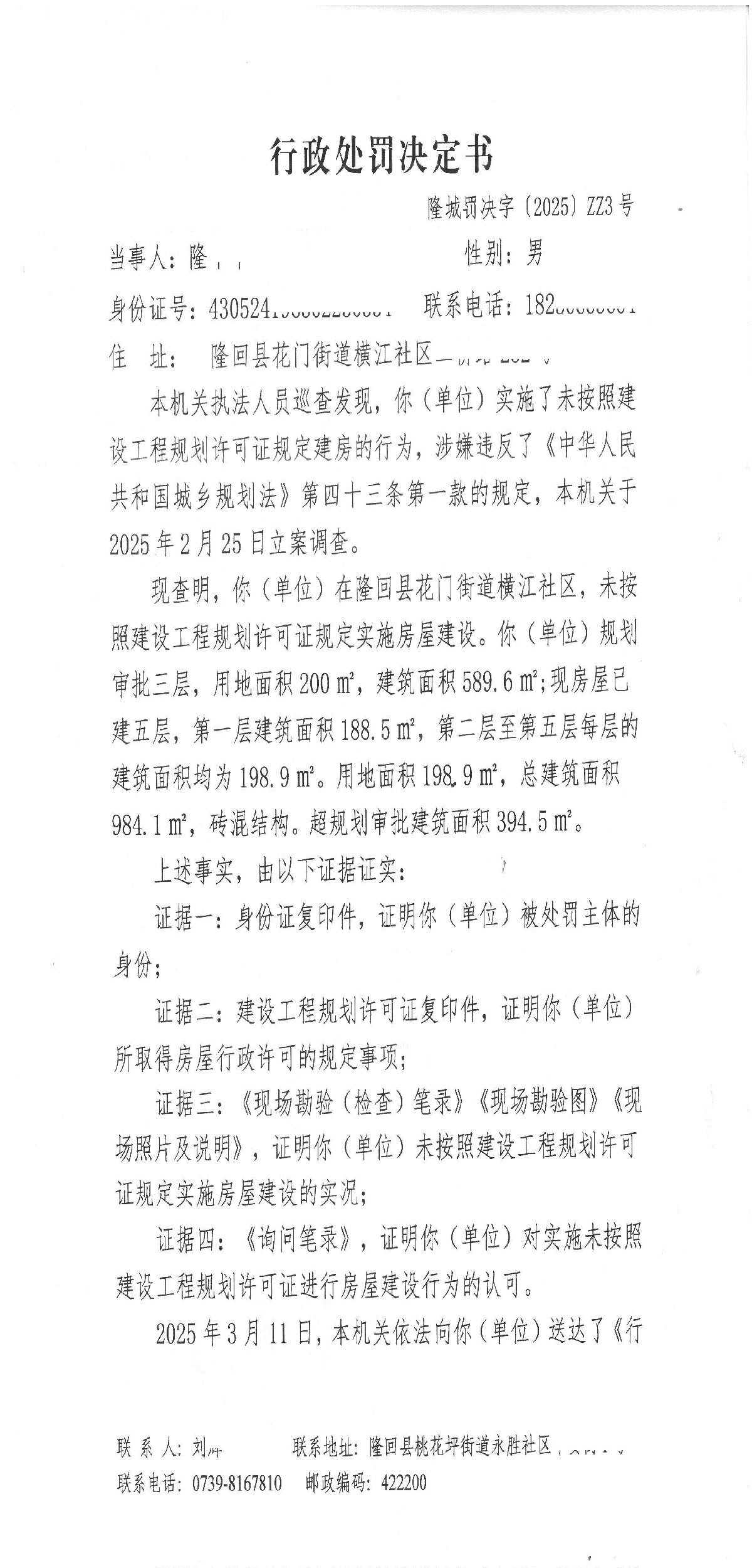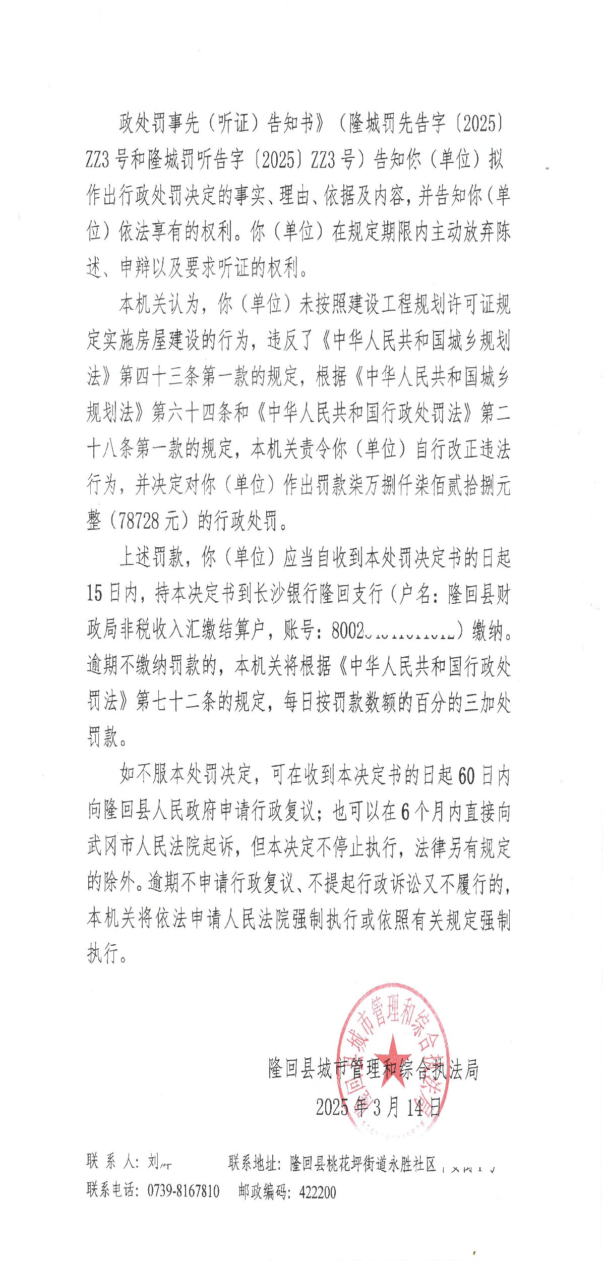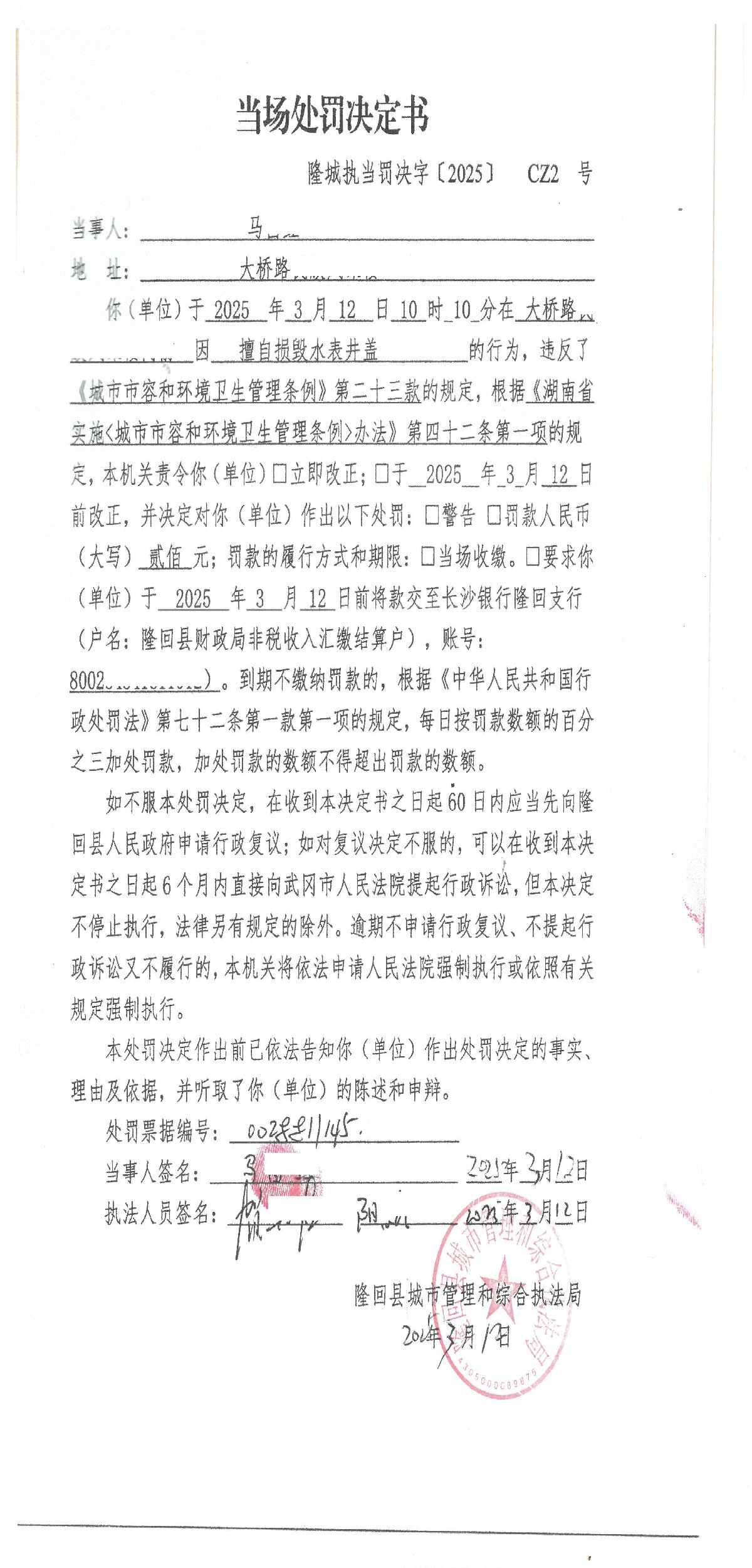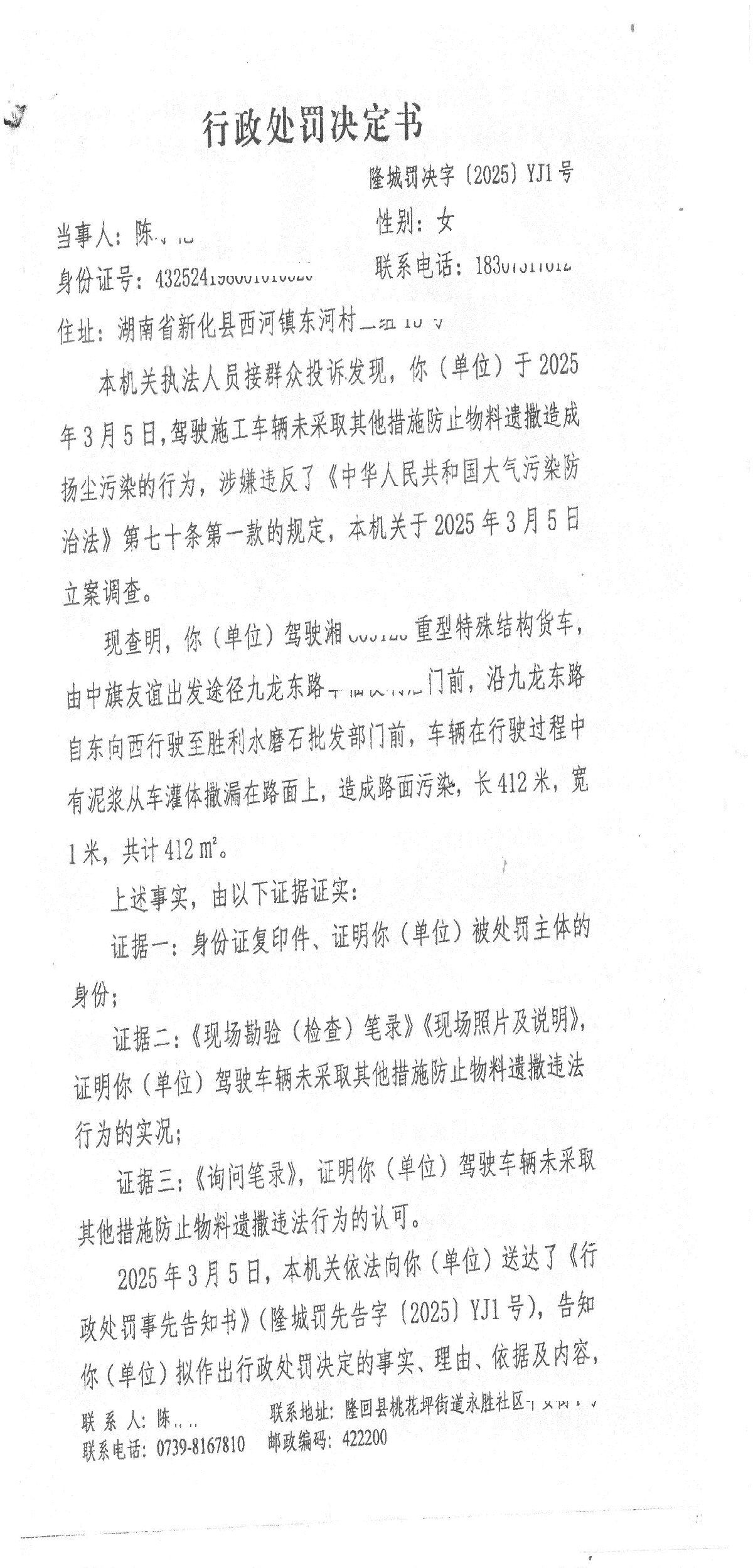 隆回县城市管理和综合执法局3月行政处罚决定书