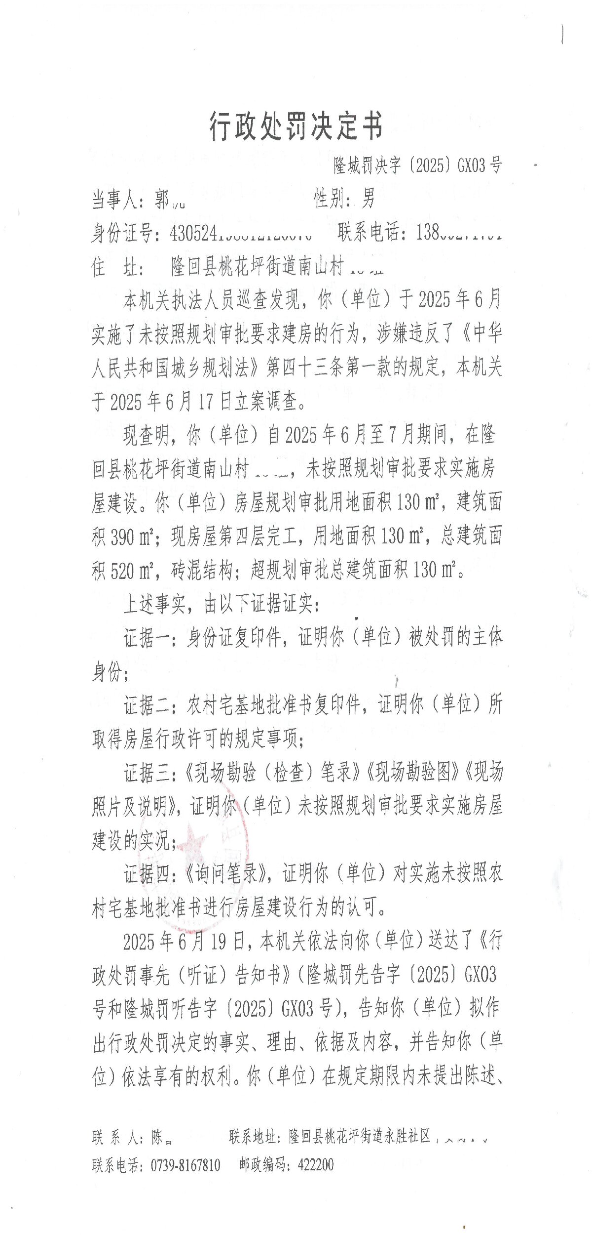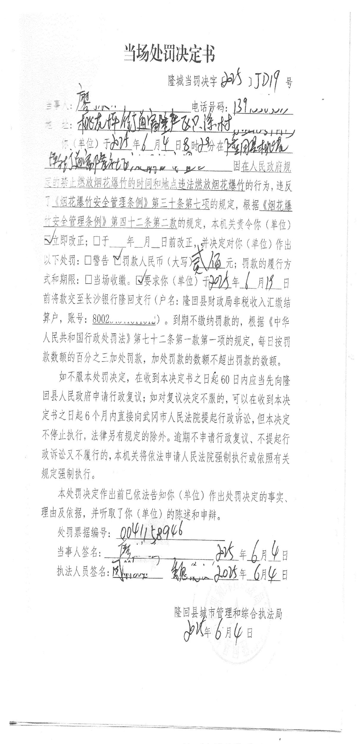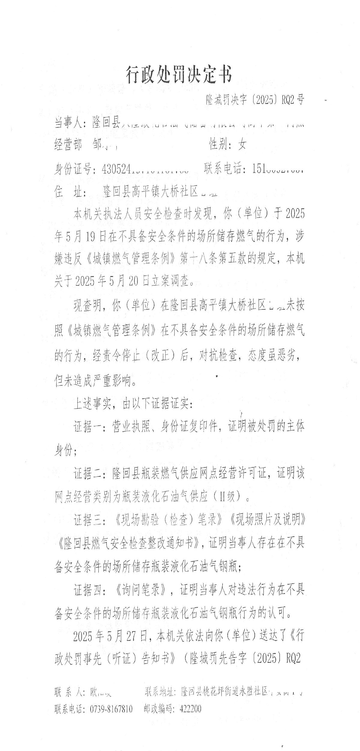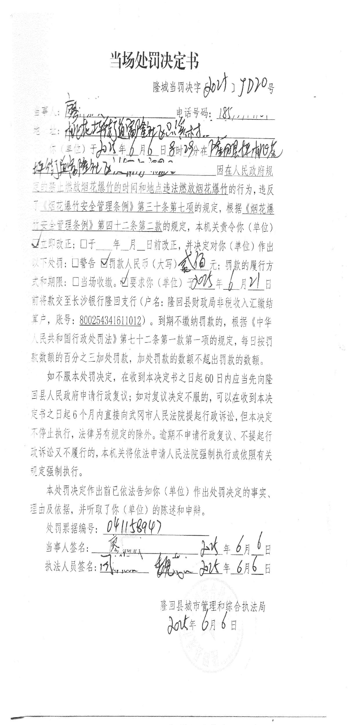 隆回县城市管理和综合执法局6月行政处罚决定书