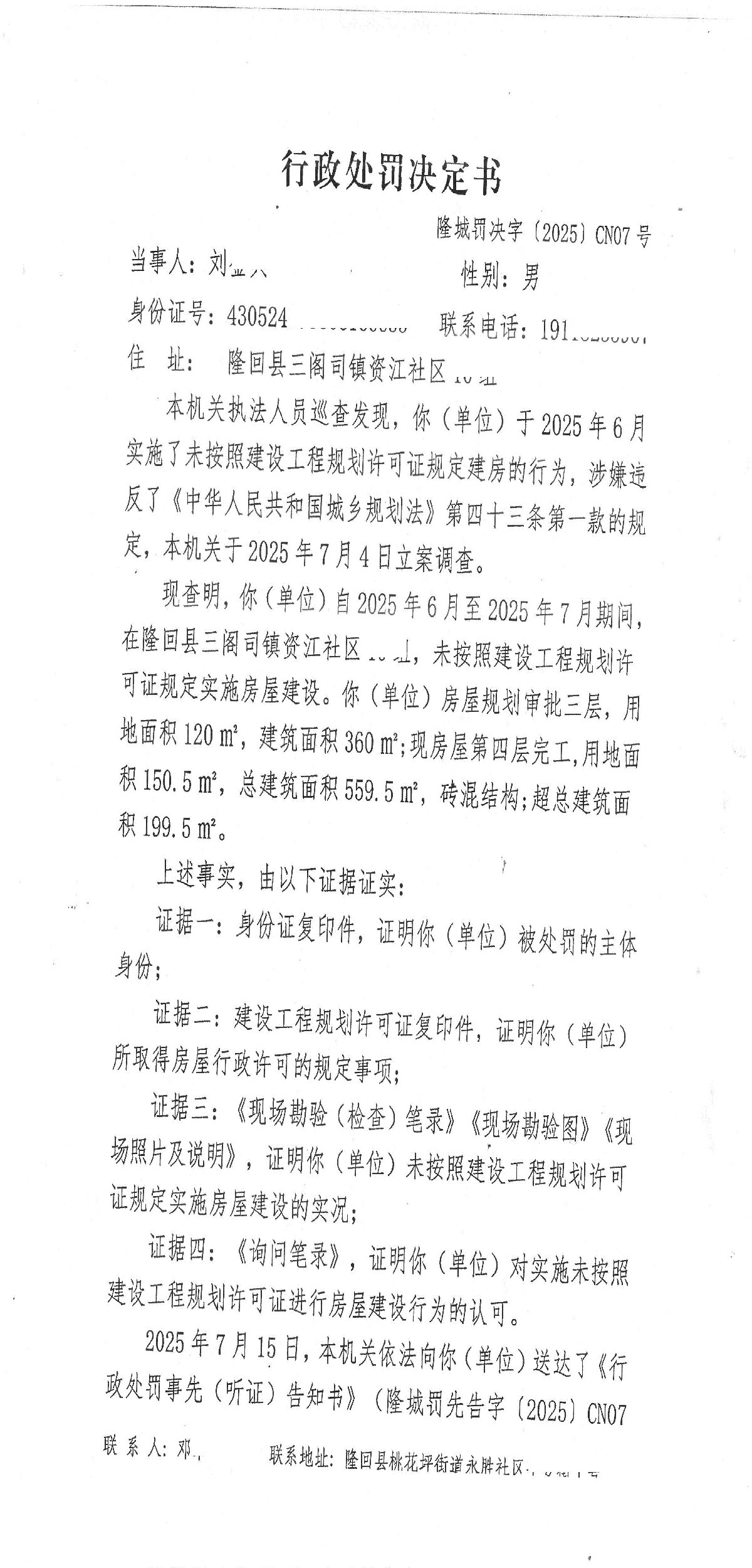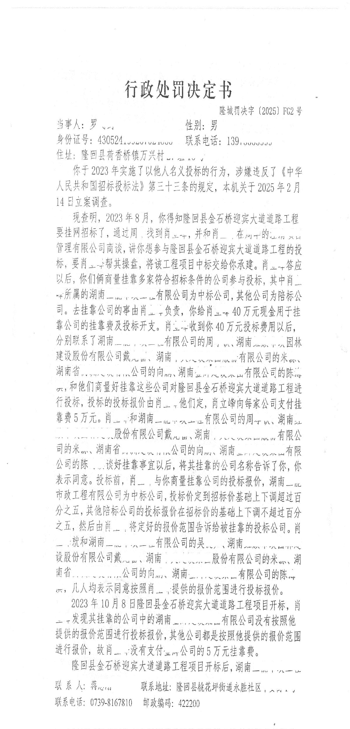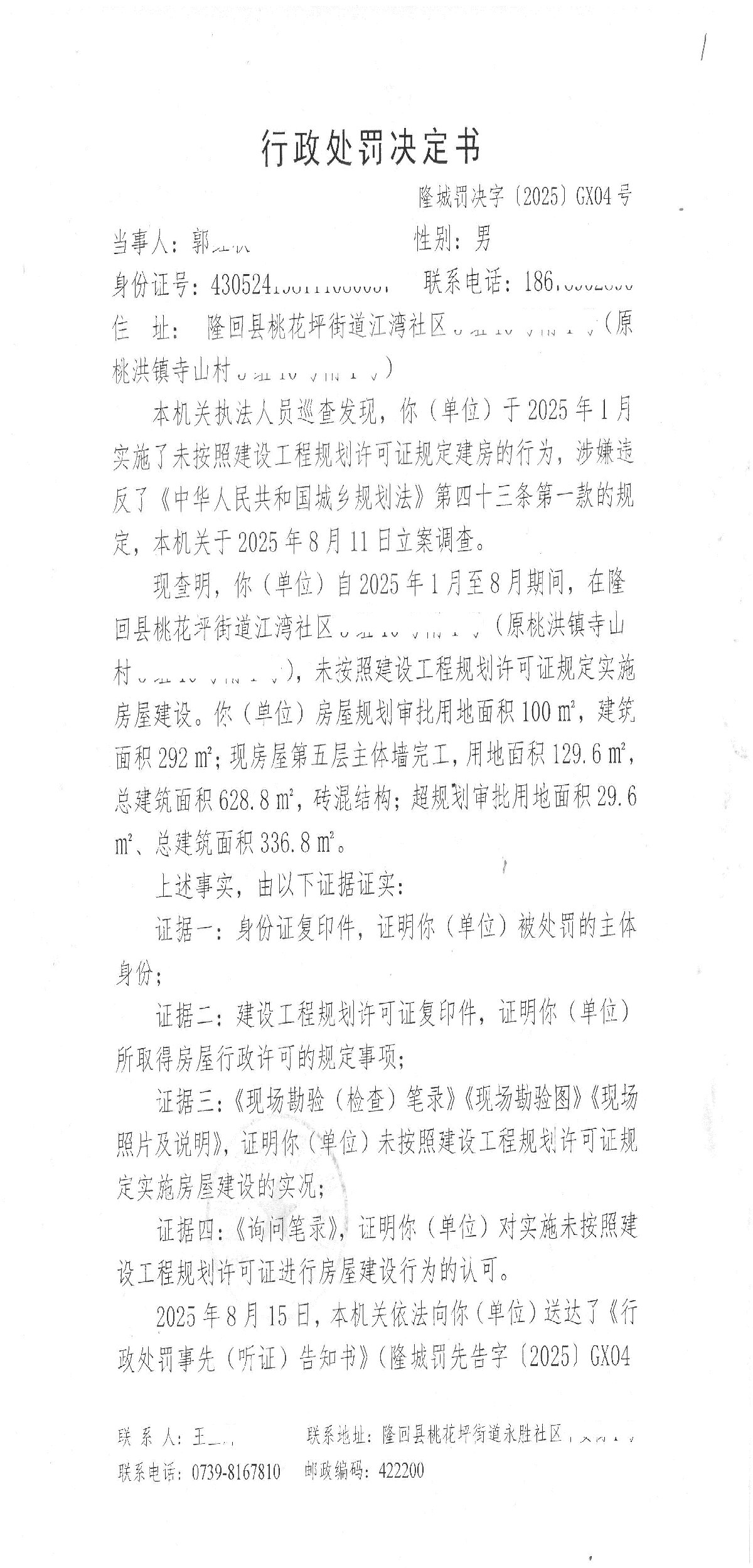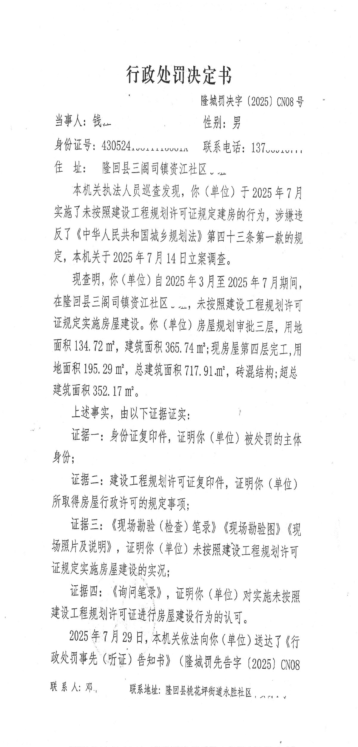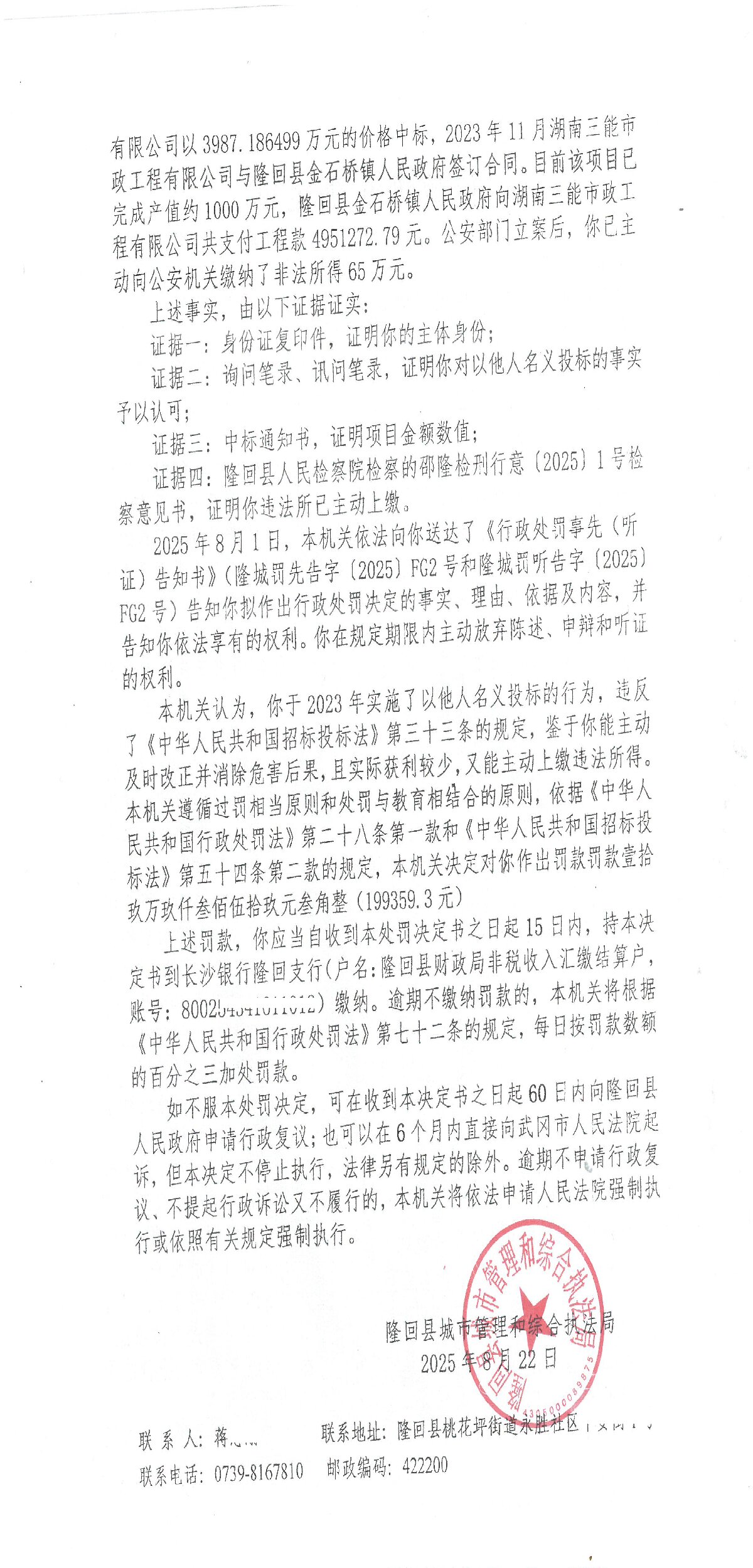隆回县城市管理和综合执法局8月行政处罚决定书