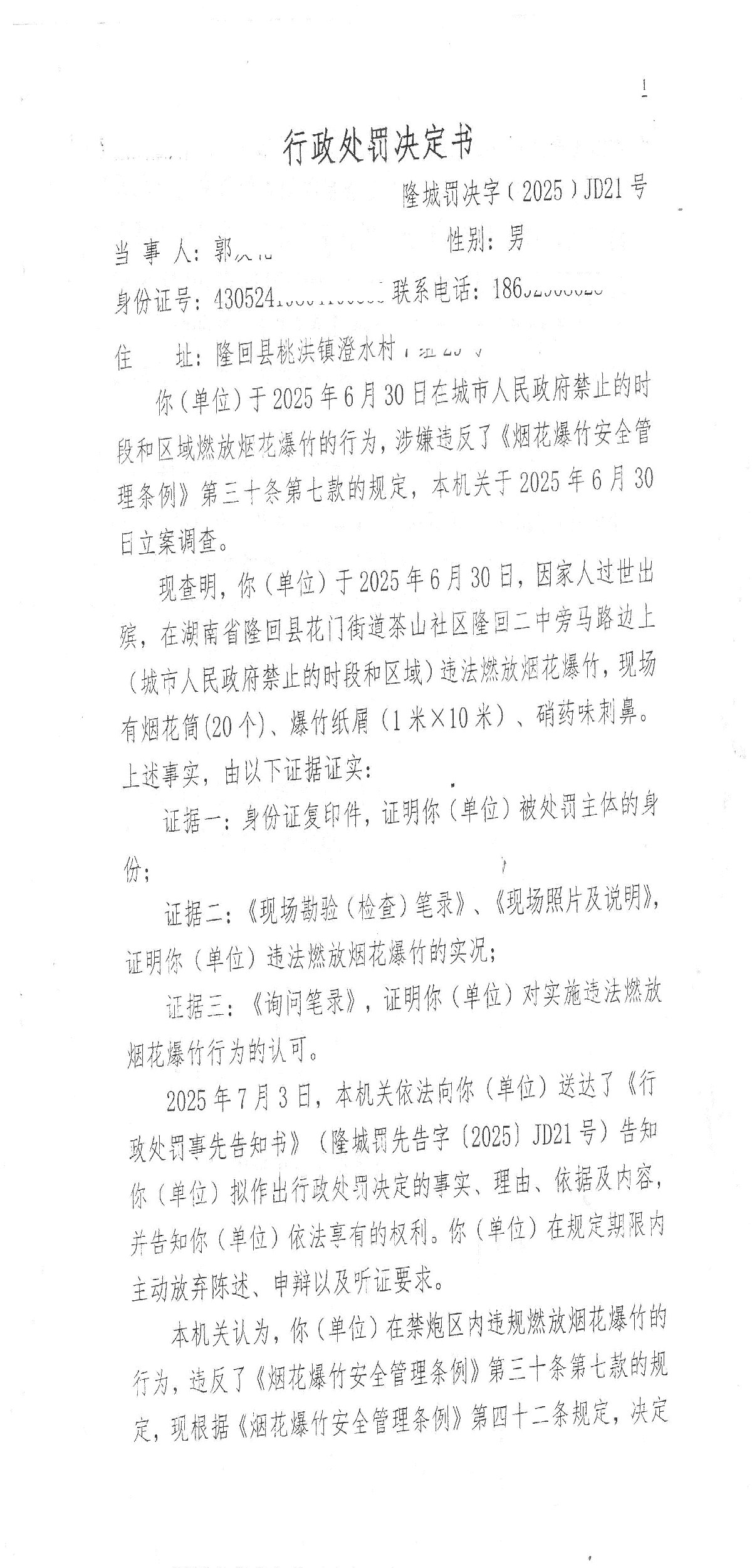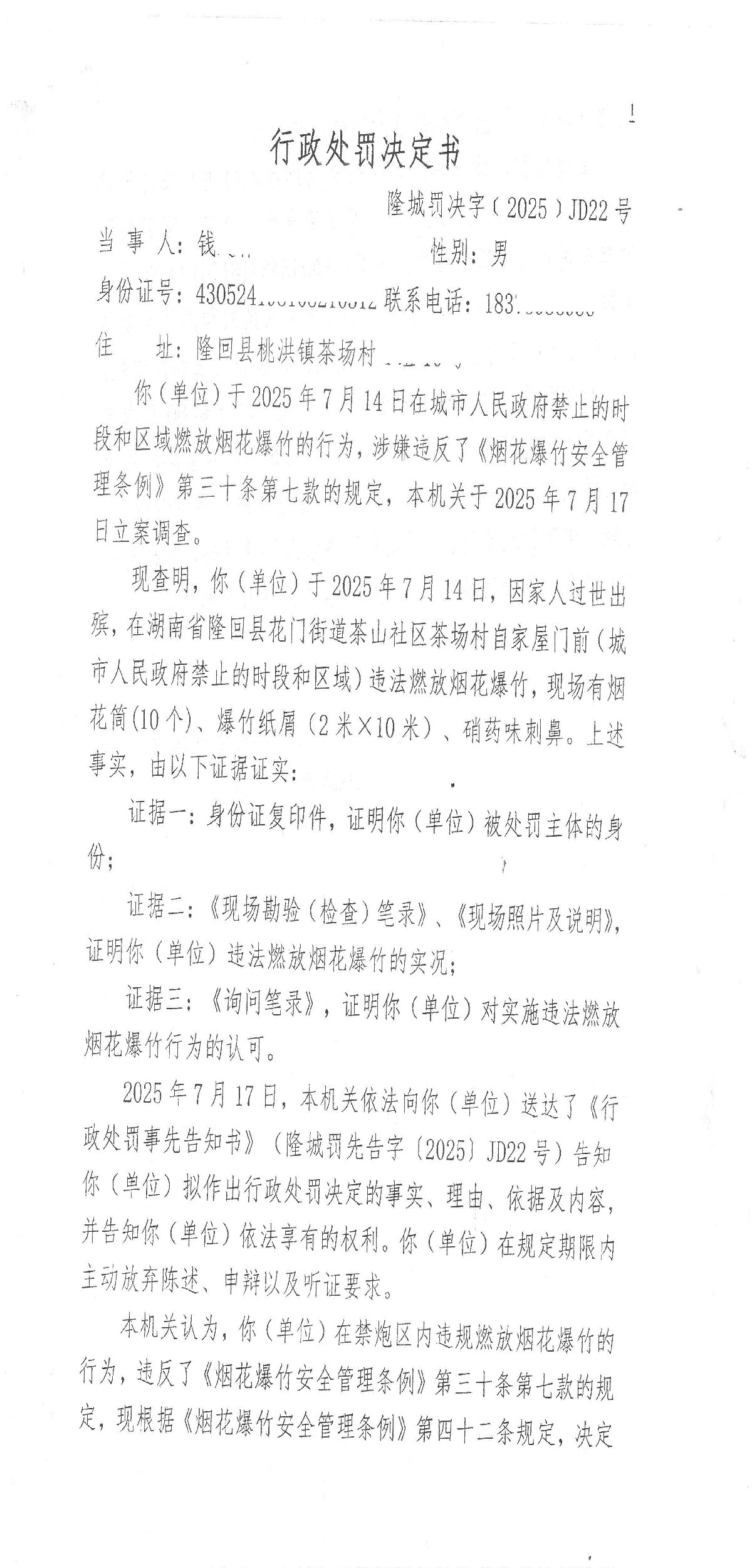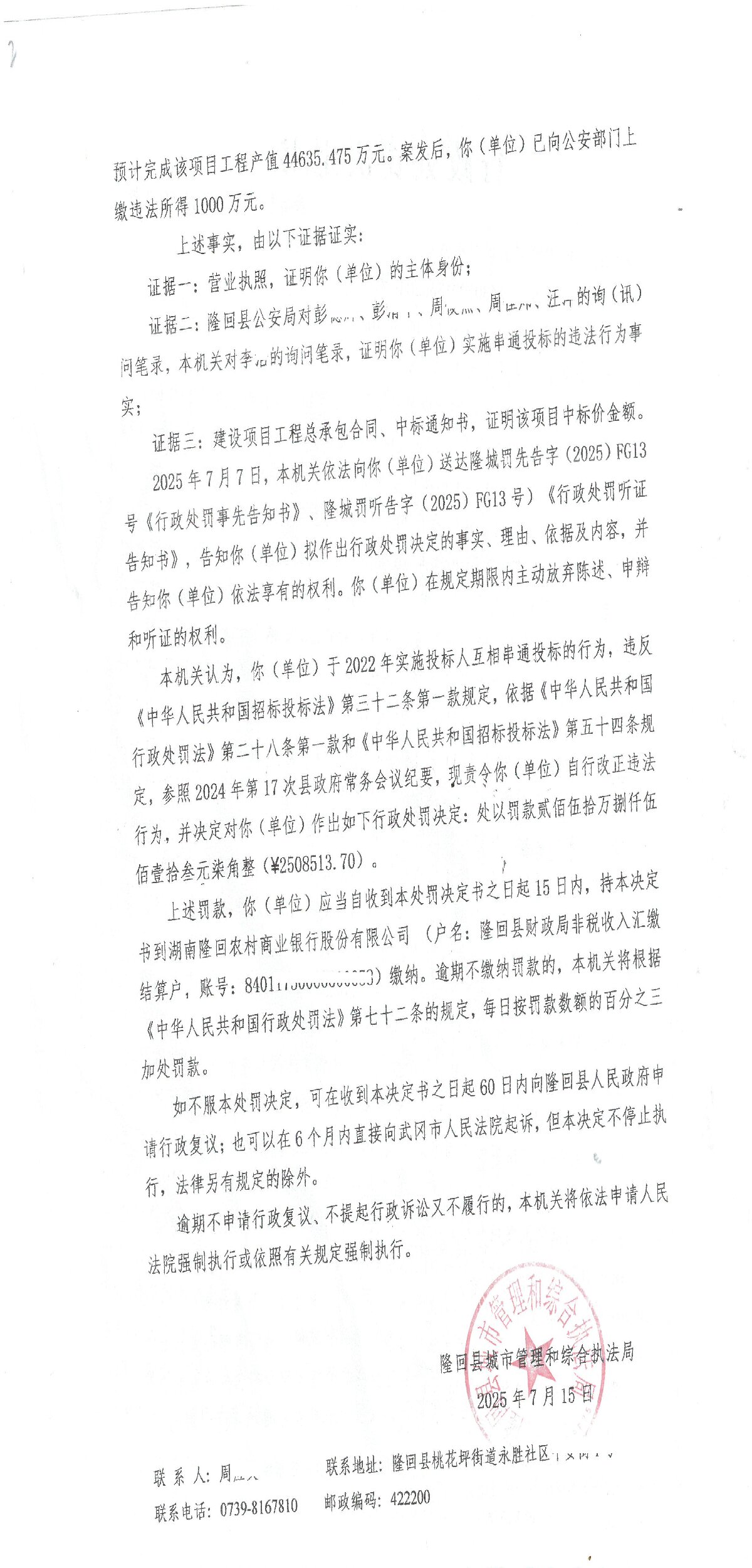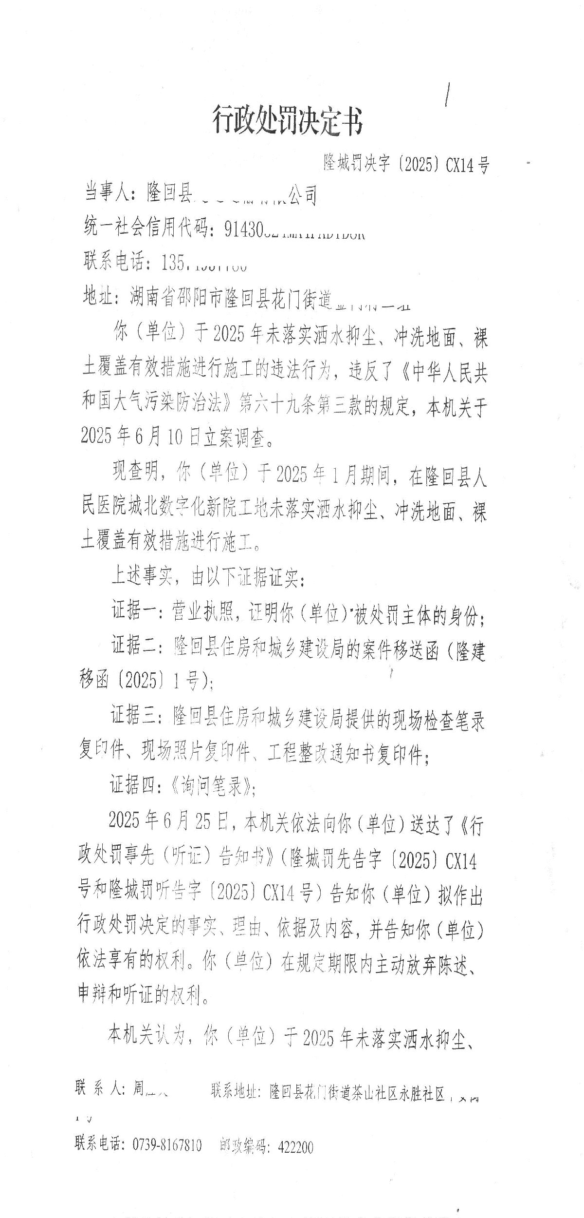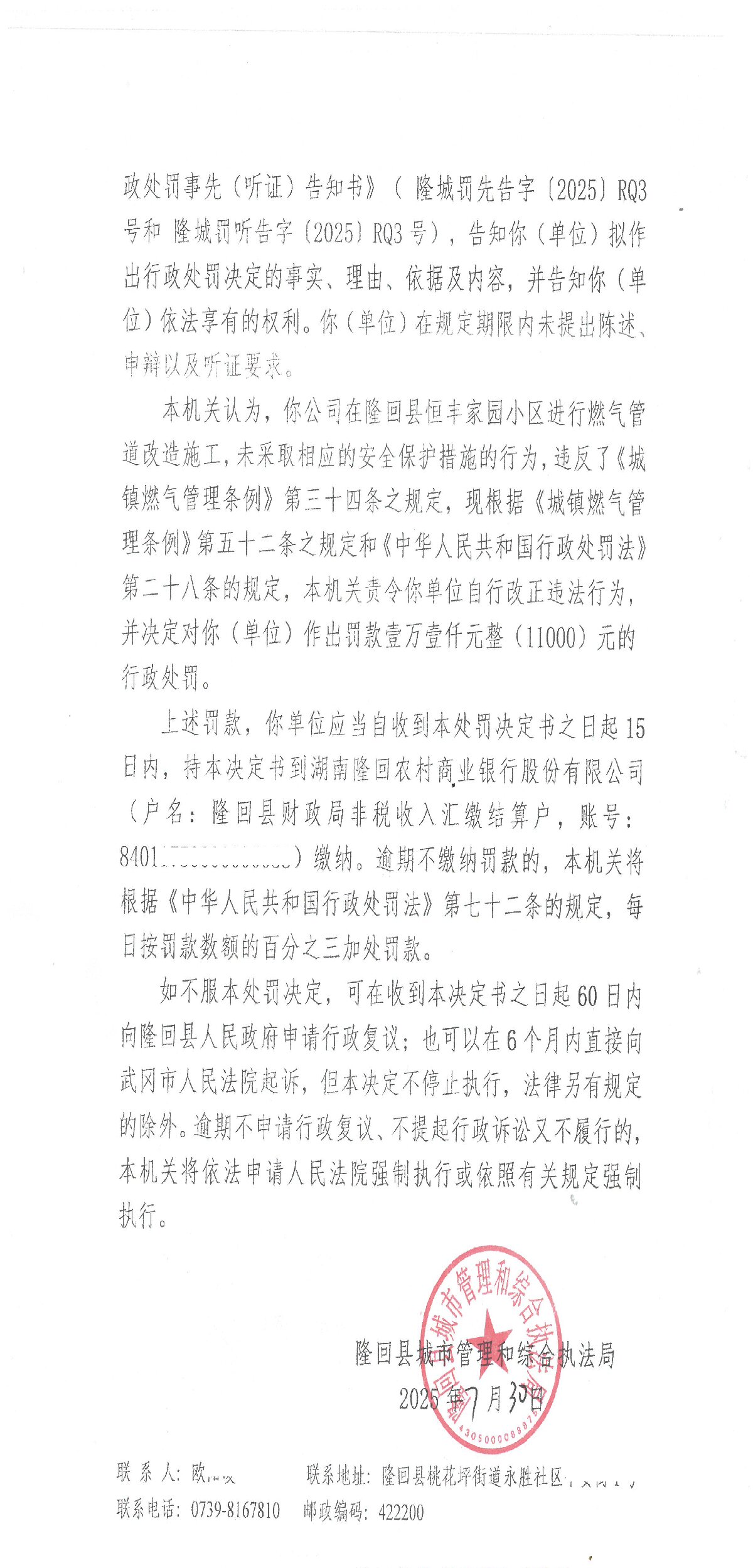 隆回县城市管理和综合执法局7月行政处罚决定书