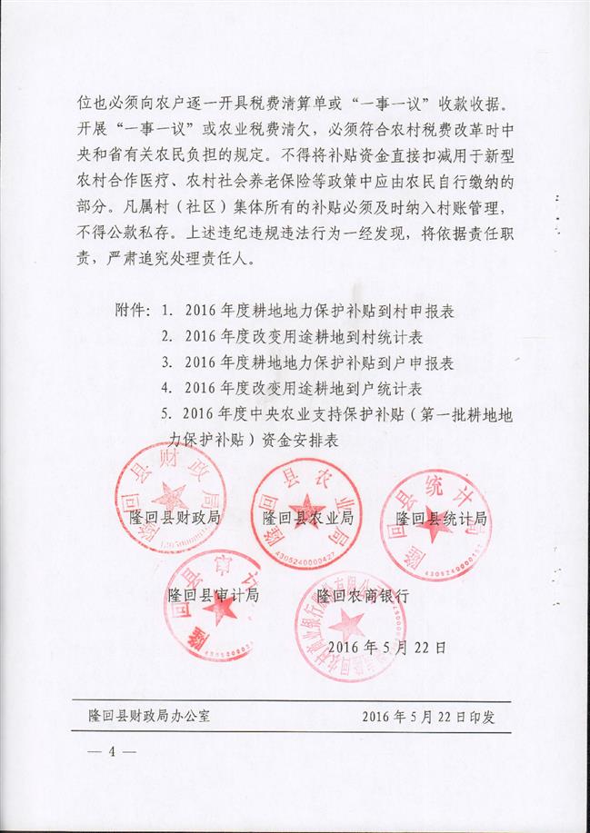 隆回县2016年中央农业支持保护补贴(第一批耕地地力保护)