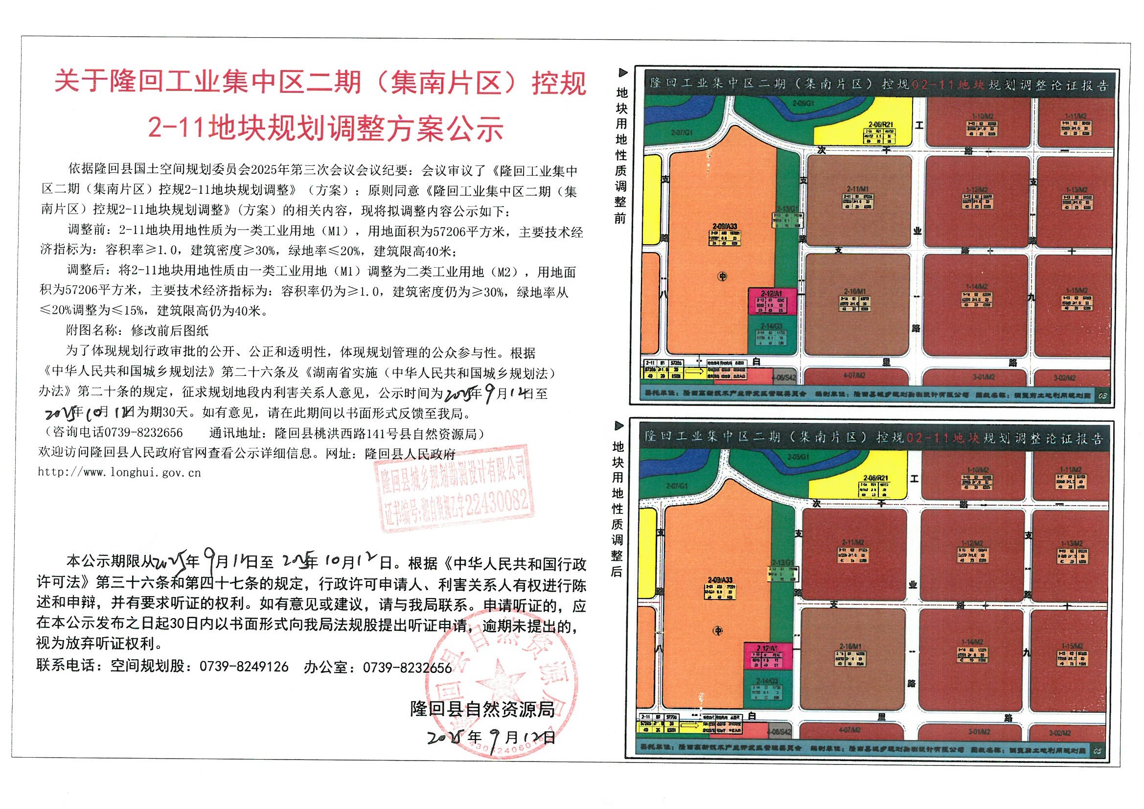 关于隆回工业集中区二期(集南片区)控规2-11地块规划调整方案公示