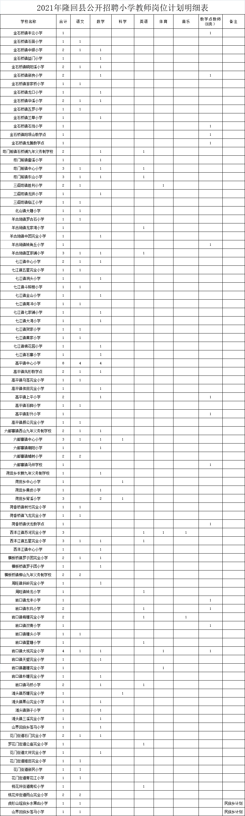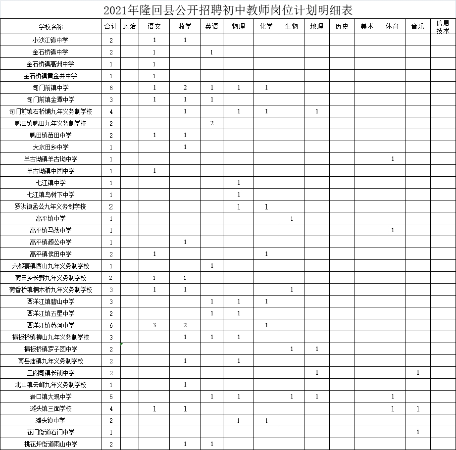 2021年隆回县公开招聘中小学(职业中专)教师岗位计划明细表