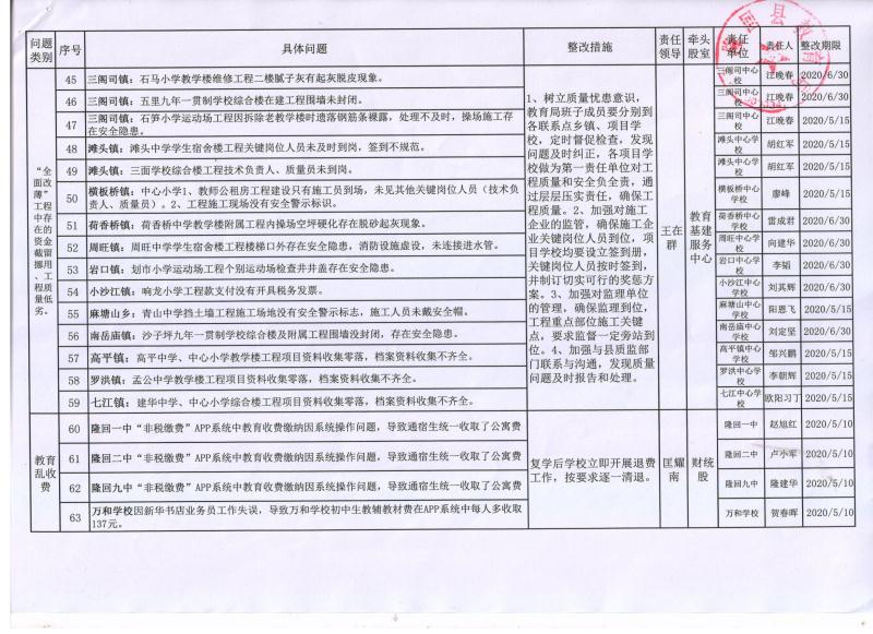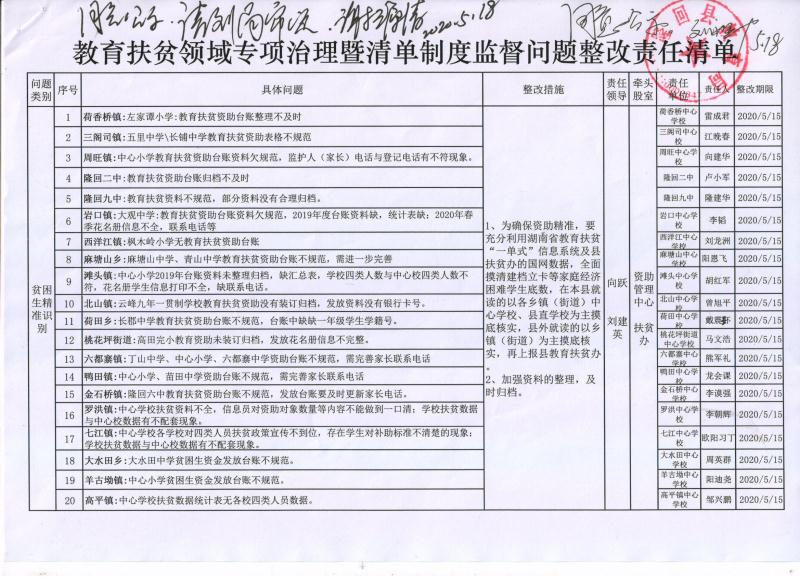 教育扶贫领域专项治理暨清单制度监督问题整改责任清单