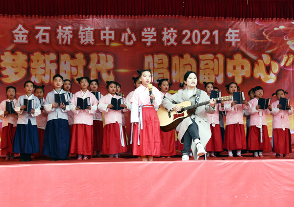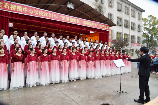 为丰富师生业余文化生活,喜庆金石桥镇被定为隆回县域经济副中心,12月14日上午,隆回县金石桥镇中心学校在该镇金桥小学操坪隆重举行2021年校园文化艺术节“追梦新时代,唱响副中心”为主题的文艺汇演。