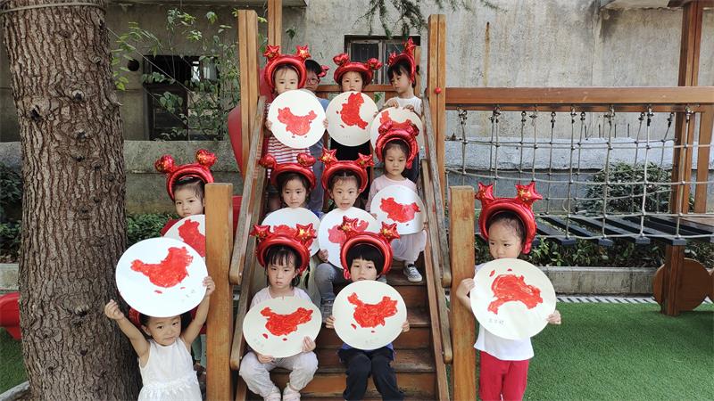 该园教职员工通过舞蹈、演讲、朗诵等形式向敬爱的祖国献上最深情的祝福。小班幼儿在老师组织下,通过唱歌、跳舞、做游戏等形式祝福祖国妈妈的生日。中班开展了唱《国旗国旗真美丽》《祖国祖国我们爱你》歌曲、老师讲解五星红旗特点、小朋友制作粘贴五星红旗等活动。认识中国地图,了解中国各省份的特色小吃和标志性建筑,大班则通过看看、说说、唱唱、画画等形式,让孩子们感受祖国的雄伟壮大,在孩子们心田播撒下了一颗颗爱国的种子。