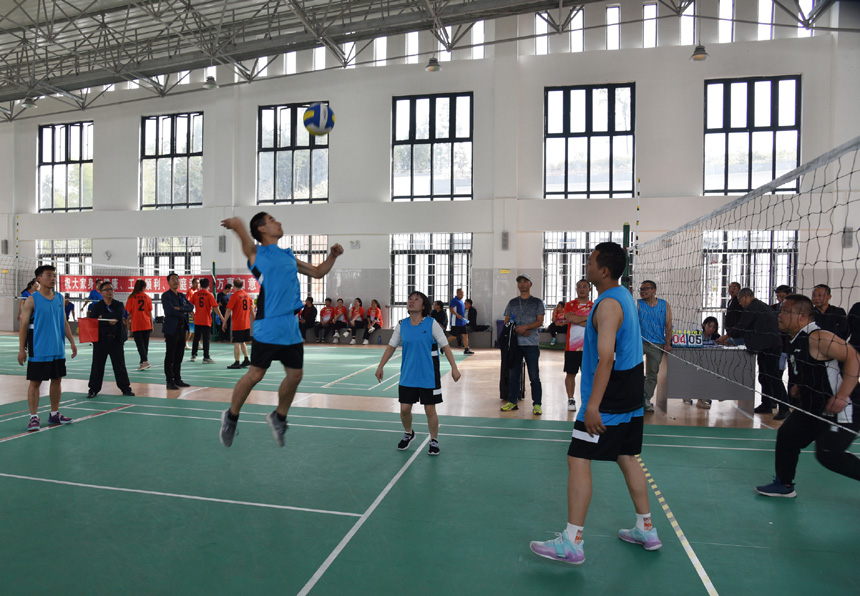 为提高教职工身体健康水平,深入推进教职工心灵建设工程,展现教职工积极向上的风采,加强全镇各学校之间的联系交流,促进营造和谐的校园文化氛围,10月20日,隆回县金石桥镇中心学校在该镇芙蓉学校体育馆举办首届教职工气排球比赛。参赛以全镇中小学党支部为单位的6个教职工代表队。该镇中心学校党总支书记、校长阳迪尧率全体班子成员参加比赛活动。
