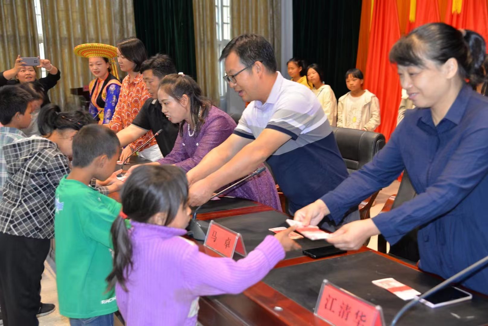 9月29日,湖南省铭志基金会爱心人士深入隆回县虎形山瑶族乡,为100名困难学生送来新书包,为20名困难学生每人捐赠1000元现金,并对孩子们开展感恩励志教育。(罗理力摄影报道)