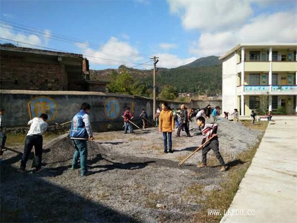 隆回教育网讯(通讯员陈文)11月10日,隆回县大观完小大操场一侧空地上,铁铲低鸣、锄头飞舞、斗车艰难跋涉,艳阳天下六年级176、177、186班师生齐动手,为6张乒乓球桌来安家。