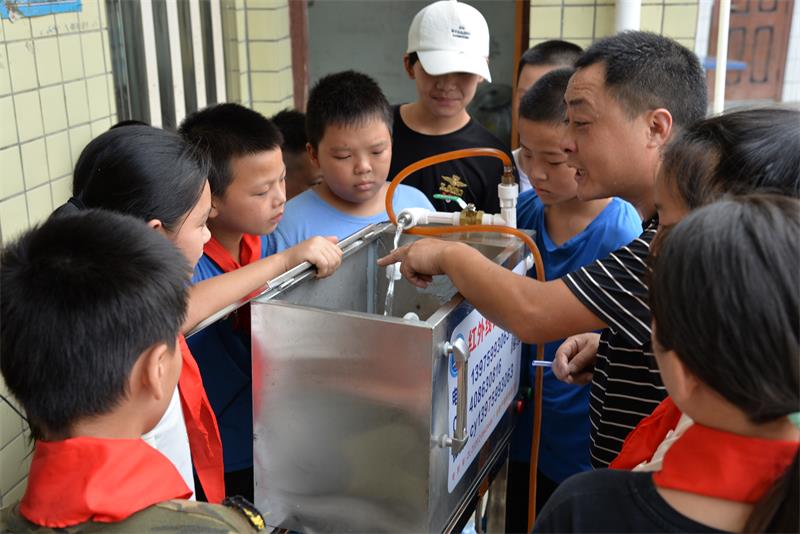 8月9日,第43届湖南省青少年科技创新大赛在长沙举行,隆回县岩囗镇藕塘小学学生创新成果项目《子母垃圾桶》再次赢得专家评委的一致称赞。今年年初,该校师生发明的《大型公厕红外线智控冲水器》被授予国家专利,并代表湖南省参加国赛。