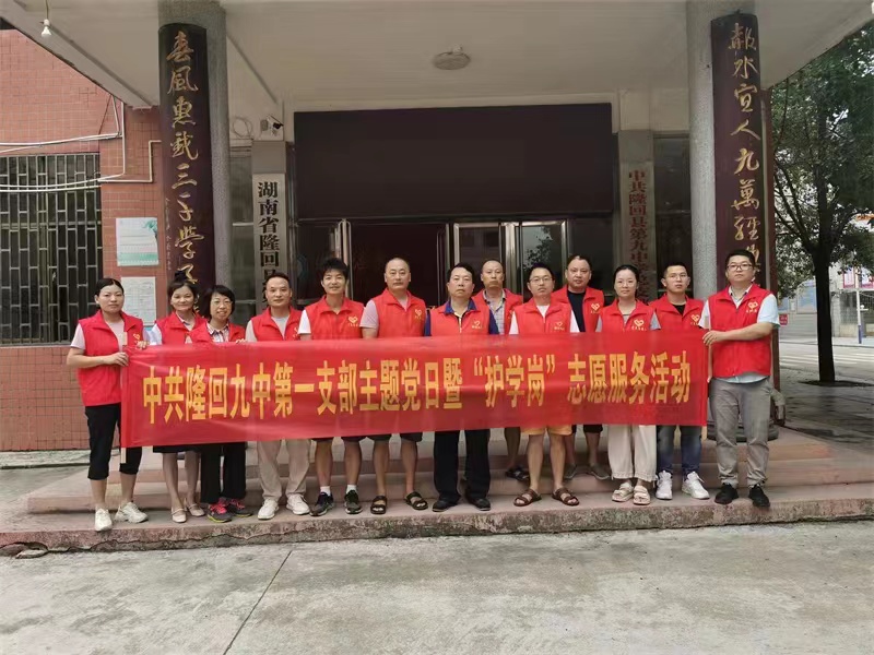 开学日,校门前人流、车流空前集中,为保障交通畅通有序和学生上学安全,隆回九中党总支制定了8月份主题党日活动方案。该校校长隆建华、党总支书记范青友等志愿者们热情服务,文明引导,引导学生报名。校园内外文明礼让,忙而不乱,秩序井然,学生家长和过往群众感叹道:“忙有人帮,事有处问,为九中的师生点赞!”