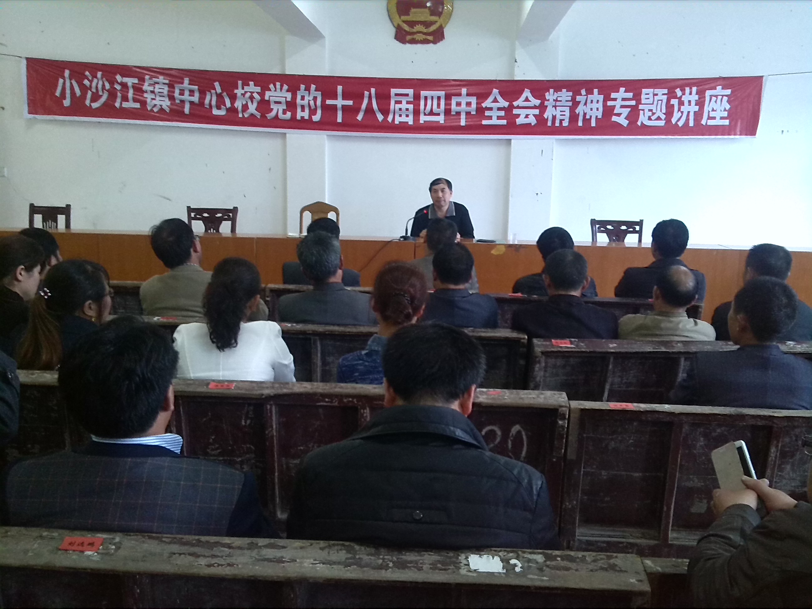 隆回教育网讯(通讯员:罗丽梅)5月7日下午,小沙江镇中心学校邀请县委宣传部副部长阳黎进行十八届四中全会精神专题宣讲辅导。小沙江镇中心学校、小沙江镇中学、文明学校、中心小学70多位教师参加,梅坪小学、龙坪小学两校校长及教师代表参与学习。