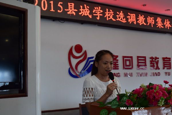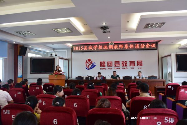 隆回教育网讯 8月13日,隆回县教育局召开2015县城学校选调教师集体谈话会议,局长彭和生作热情洋溢的发言,副局长易佑勇主持会议,人事股长夏福田部署安排具体工作,教师代表上台交流发言。
