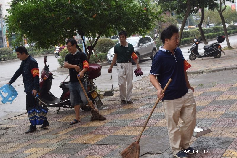隆回教育网讯 8月31日,隆回县教育局办公室、督导室、监察室、工会、人事股等股室人员组成的文明卫生劝导大队志愿服务劝导员戴上红袖章走上该局责任路段,开展创文明卫生县城上街劝导。
