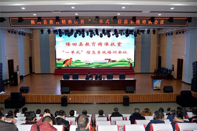 隆回教育网讯(通讯员 刘仕栋)为加快全县各学校教育精准扶贫“一单式”信息服务系统的应用,做好各教育阶段建档立卡等家庭困难学生基础数据核实工作,县教育局12月11日上午在思源实验学校多媒体报告厅召开了教育精准扶贫“一单式”信息服务系统培训会议。各乡镇中心学校、县直各学校校长、分管教育扶贫工作副校长、教学副校长、各校扶贫专干等150余人参加了培训。教育局党委委员、副局长马晖晖、教育工会联合会主席刘建英出席会议。