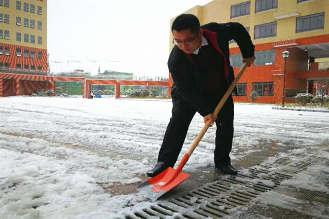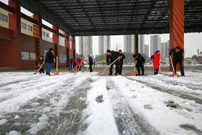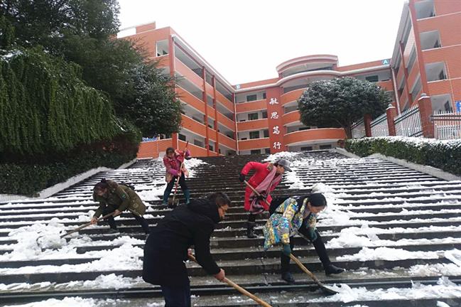 据悉,在这一天,我县思源实验学校、东方红小学、桃花坪中学、九龙学校等学校都纷纷组织老师对校门周围及校园进行结冰、积雪清理,力保学生不出现安全事故。