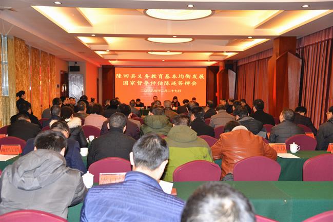 隆回教育网讯(通讯员 孙孝智)12月27日,由国家督学、浙江省宁波市教育局原局长(副厅级)沈剑光率队的国家评估专家组,对隆回县义务教育基本均衡发展情况进行实地评估。隆回县委书记王永红,县委副书记、县长刘军,县委常委、宣传部长刘科棉,县人大常委会副主任罗海波,县人民政府副县长宁玉光,县人民政府副调研员罗晓光,以及该县四大家分管、联系教育的有关领导,县直有关部门一把手,各乡镇(街道办)党政主要负责人参加陈述答辩会,会议由邵阳市教育局局长肖玉叶主持。